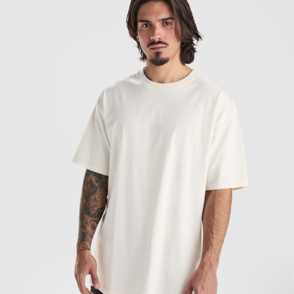Футболка свободного кроя оверсайз с короткими рукавами. Круглый