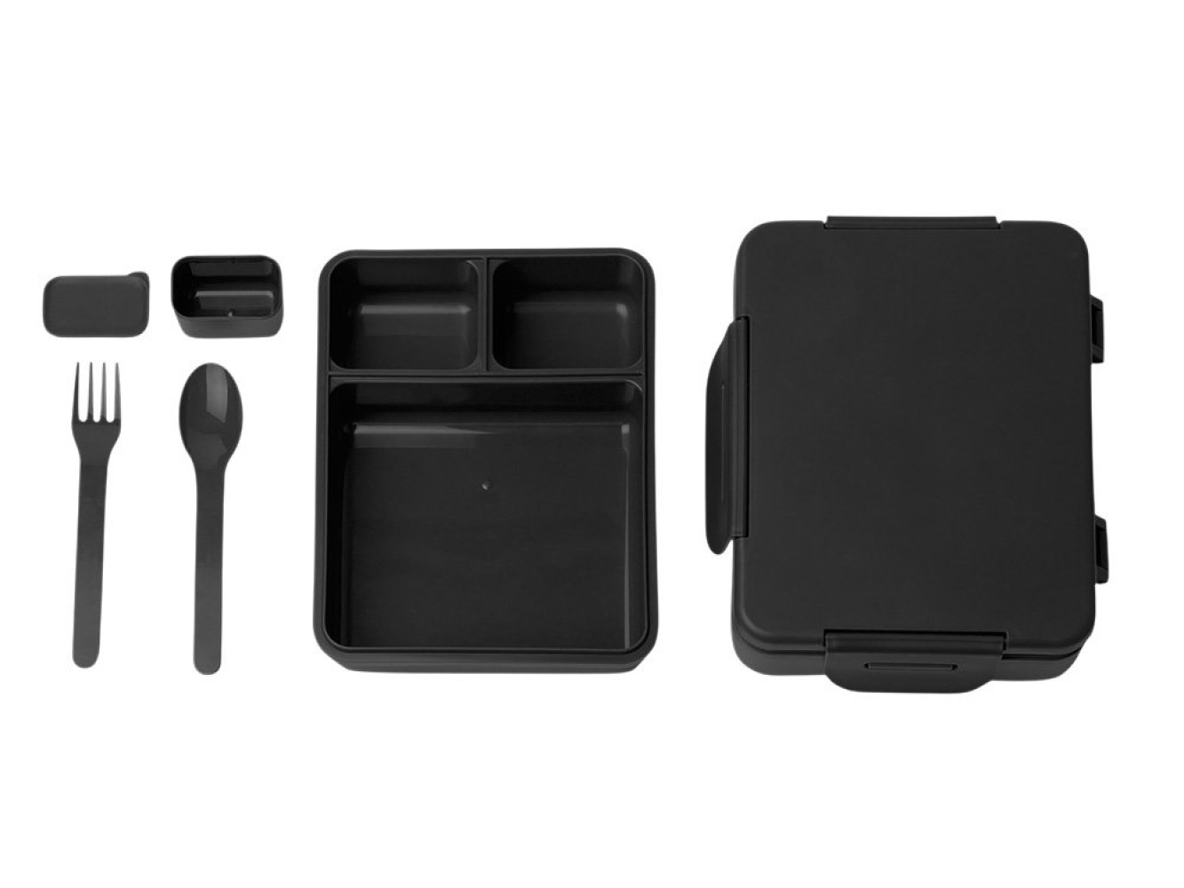 Ланч-бокс объемом 1,3 л, изготовленный из безопасного полипропилена. Продуманная конструкция позволяет удобно разделять продукты и брать обед с собой без риска протекания. Три независимых отделения разного размера — можно разделять горячее, гарнир и салат, не смешивая вкусы и запахи Съемное основное отделение — под ним есть место для хранения вилки и ложки (приборы идут в комплекте) Откидная крышка с защитой от протекания — силиконовая подкладка внутри надежно герметизирует бокс Отдельный контейнер для соуса — в комплекте есть небольшая емкость для заправок, соусов или приправ Можно разогревать в микроволновке — достаточно открыть крышку Уход: только ручная мойка (не подходит для посудомоечной машины) Упаковка: экологичная дизайнерская коробка