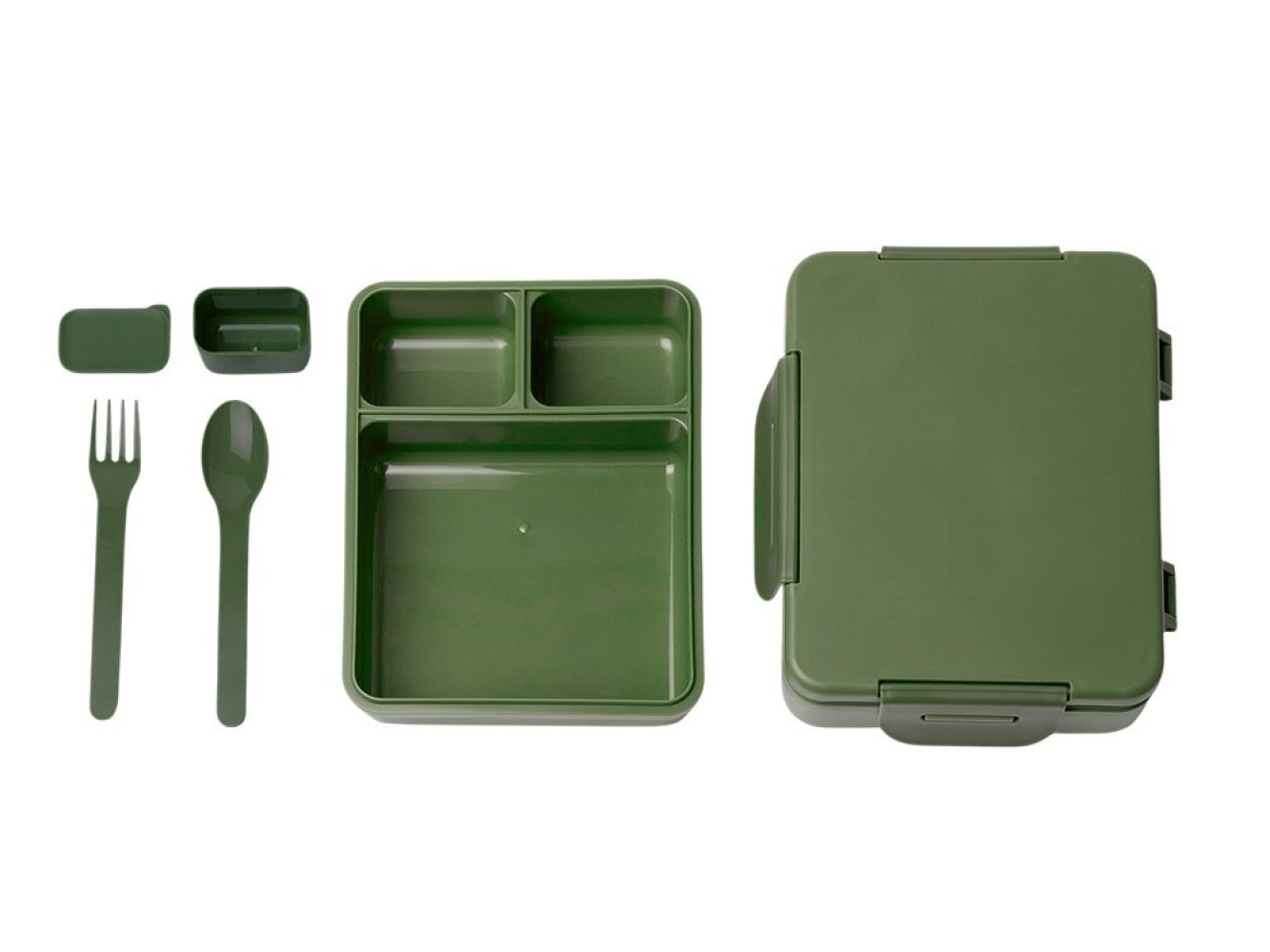 Ланч-бокс объемом 1,3 л, изготовленный из безопасного полипропилена. Продуманная конструкция позволяет удобно разделять продукты и брать обед с собой без риска протекания. Три независимых отделения разного размера — можно разделять горячее, гарнир и салат, не смешивая вкусы и запахи Съемное основное отделение — под ним есть место для хранения вилки и ложки (приборы идут в комплекте) Откидная крышка с защитой от протекания — силиконовая подкладка внутри надежно герметизирует бокс Отдельный контейнер для соуса — в комплекте есть небольшая емкость для заправок, соусов или приправ Можно разогревать в микроволновке — достаточно открыть крышку Уход: только ручная мойка (не подходит для посудомоечной машины) Упаковка: экологичная дизайнерская коробка