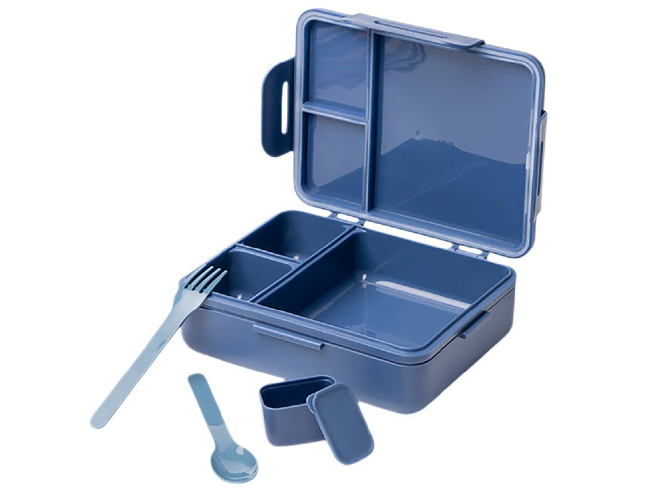 Ланч-бокс объемом 1,3 л, изготовленный из безопасного полипропилена. Продуманная конструкция позволяет удобно разделять продукты и брать обед с собой без риска протекания. Три независимых отделения разного размера — можно разделять горячее, гарнир и салат, не смешивая вкусы и запахи Съемное основное отделение — под ним есть место для хранения вилки и ложки (приборы идут в комплекте) Откидная крышка с защитой от протекания — силиконовая подкладка внутри надежно герметизирует бокс Отдельный контейнер для соуса — в комплекте есть небольшая емкость для заправок, соусов или приправ Можно разогревать в микроволновке — достаточно открыть крышку Уход: только ручная мойка (не подходит для посудомоечной машины) Упаковка: экологичная дизайнерская коробка