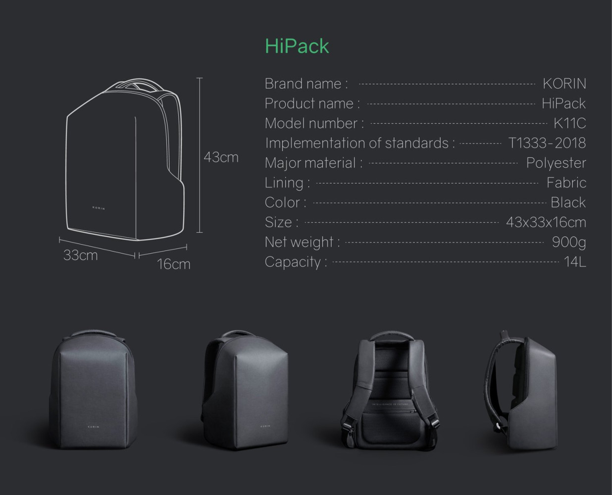 Легкий компактный городской рюкзак HiPack черного цвета, обладатель