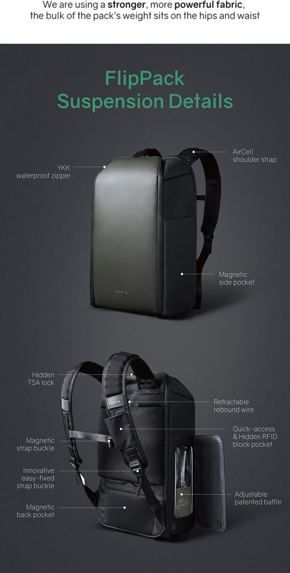 Складной рюкзак FlipPack черного цвета. Молнии рюкзака полностью