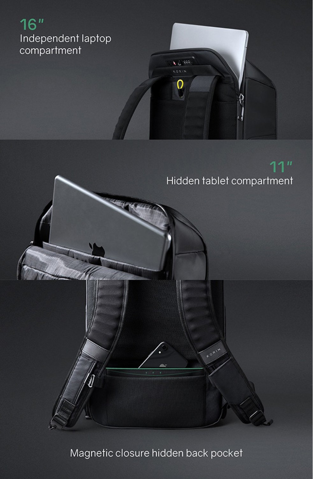 спине. Благодаря плотным перегородкам ноутбук и планшет надежно