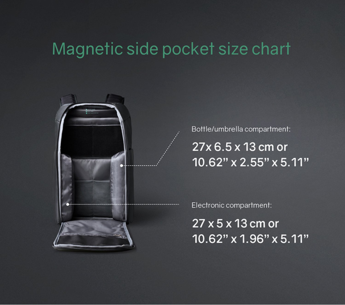 водой или зонта. Второй карман - 27х13х5 см для мелкой электроники