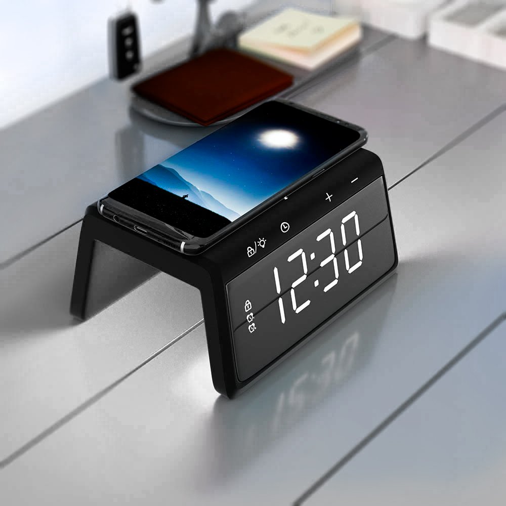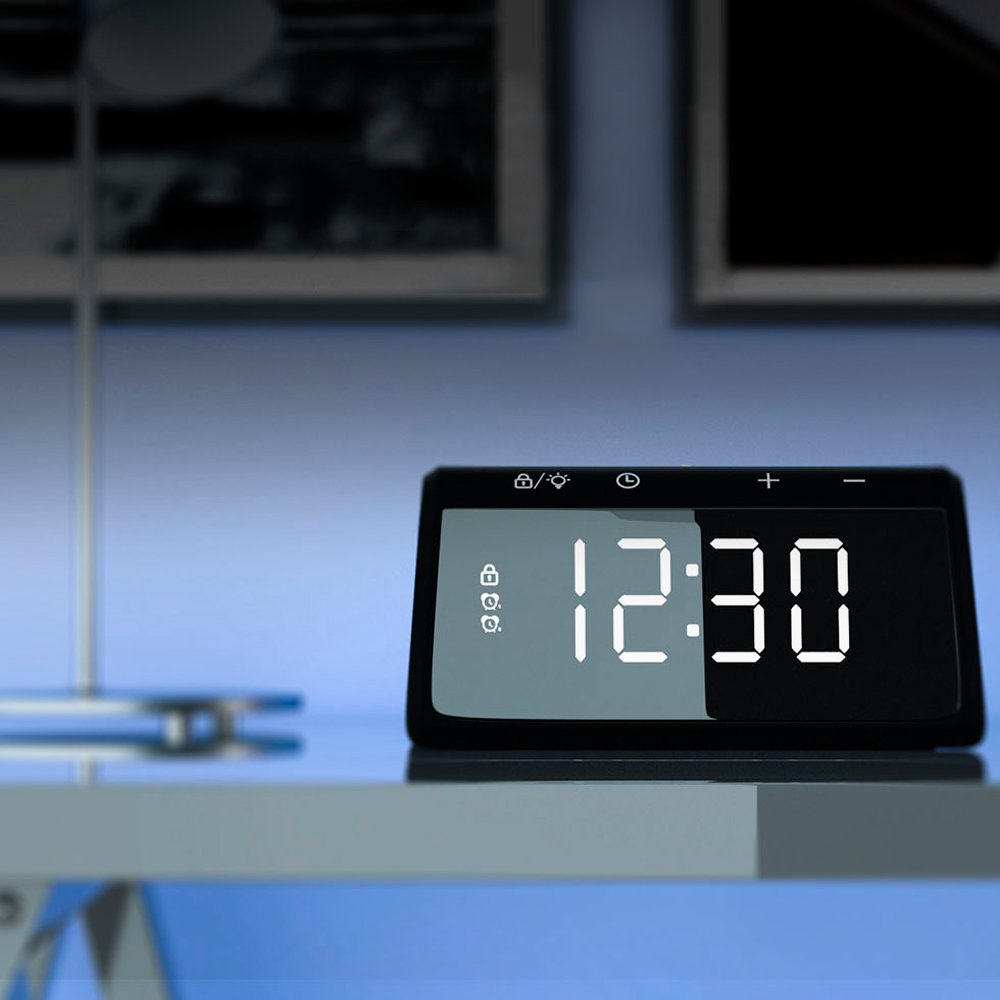 Часы настольные Bridge с функцией беспроводной зарядки, черный