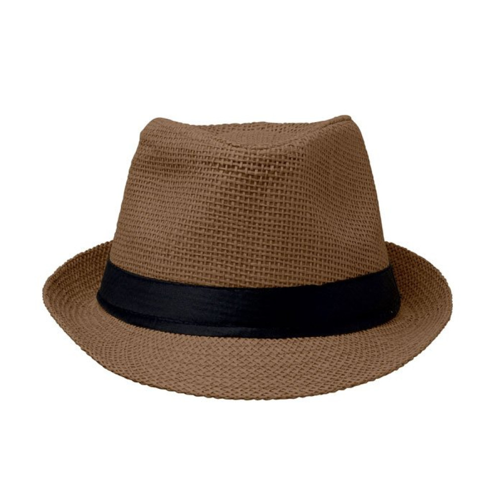 Шляпа из искусственной соломы с черной лентой из полиэстера. Для заказов без нанесения лента будет поставляться отдельно от изделия.