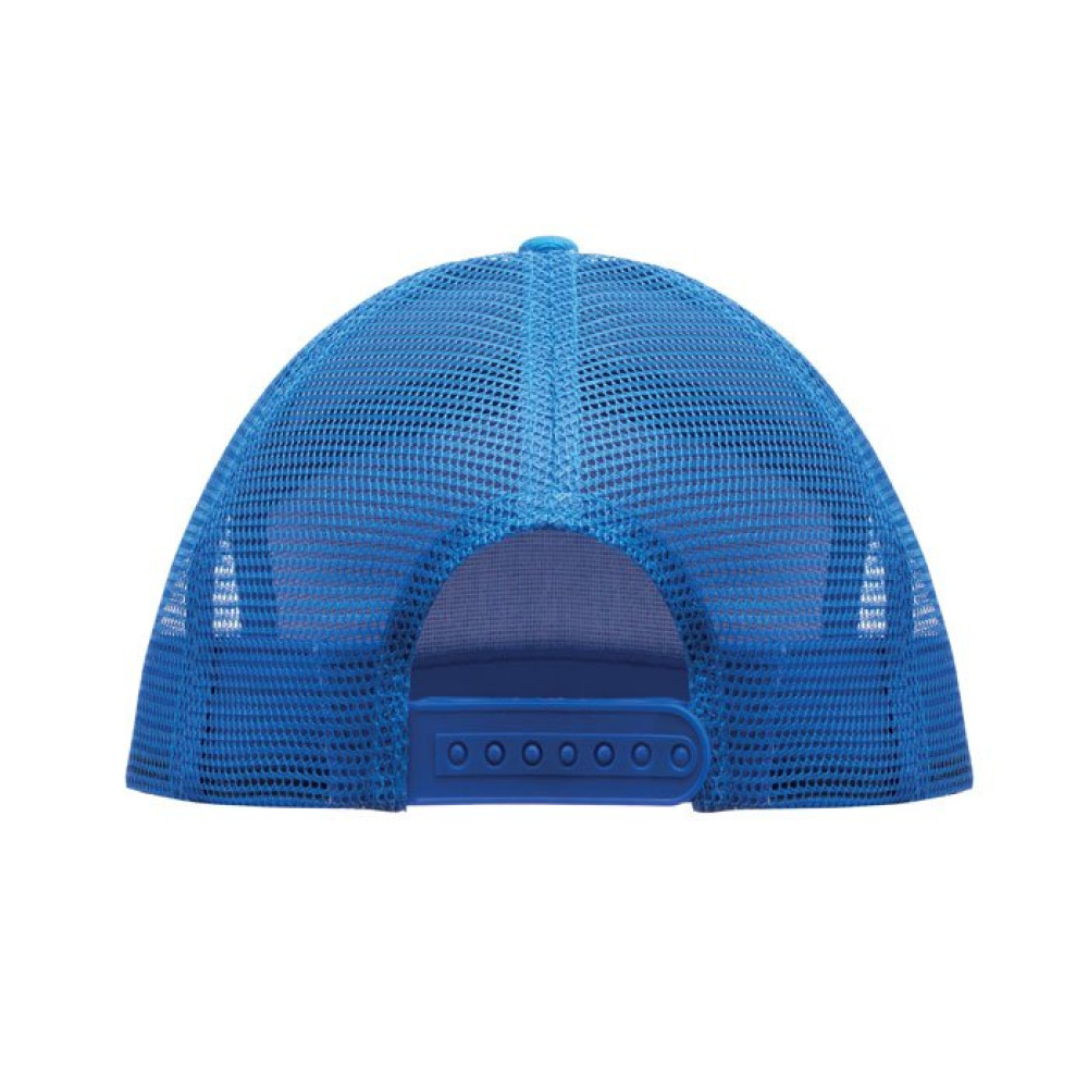 Бейсболка с плоским козырьком из хлопка 235 г/м² с сетчатой задней частью из полиэстера и пластиковой застежкой.