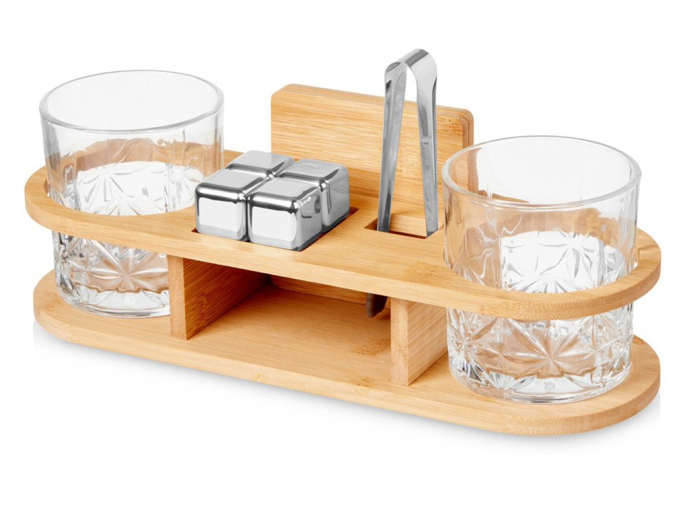 Набор для виски на бамбуковой подставке "Boulevardier" достаточно практичен - он состоит из 10 предметов, которые позволят правильно сервировать виски или какой-либо другой напиток. Все элементы набора компактно размещены на специальной подставке из бамбука, в которой для каждого предмета есть свое место — это позволяет экономить место на кухне или в столовой. Бокалы для виски (2 шт.) — изготовлены из ударопрочного боросиликатного стекла, на стенках бокалов - узор, который позволит напитку заиграть по-новому. Подставки для бокалов (2 шт.) — костеры из бамбука защитят стол и дно бокалов от царапин и капель напитка, обеспечив бесшумность при использовании. Кубики из нержавеющей стали (4 шт.) — металлические кубики, содержащие запаянную внутри смесь воды и глицерина, помогут быстро охладить виски. В отличие от ледяных кубиков, металлические не будут разбавлять напиток по мере нагрева, сохраняя истинный вкус. Щипцы для кубиков (1 шт.). Подставка (1 шт.),на которой компактно размещены все предметы набора. Выполнена из бамбука. - прочные и долговечные материалы; - подставка для удобного хранения; - объём одного бокала 350 мл; - бокалы можно мыть в посудомойке; - готовый сет для подарка.