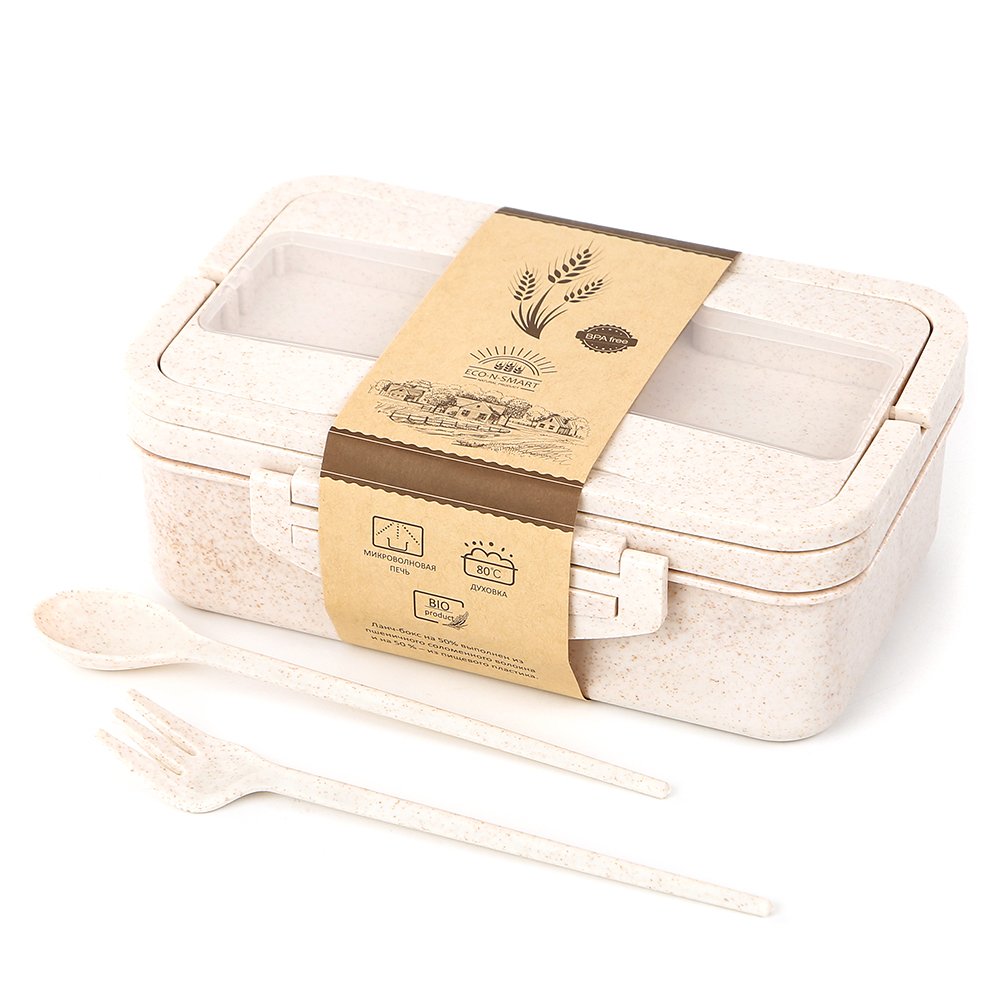 Улучшенная версия популярного Sadler. Выполнен на 50% из пшеничного волокна, также подходит для разогревания в микроволновой печи (не более 80°С). Вилка и ложка из того же материала, находятся под прозрачной матовой крышкой. 3 отсека общей вместительностью в 1 литр! Удобно, надёжно, практично.