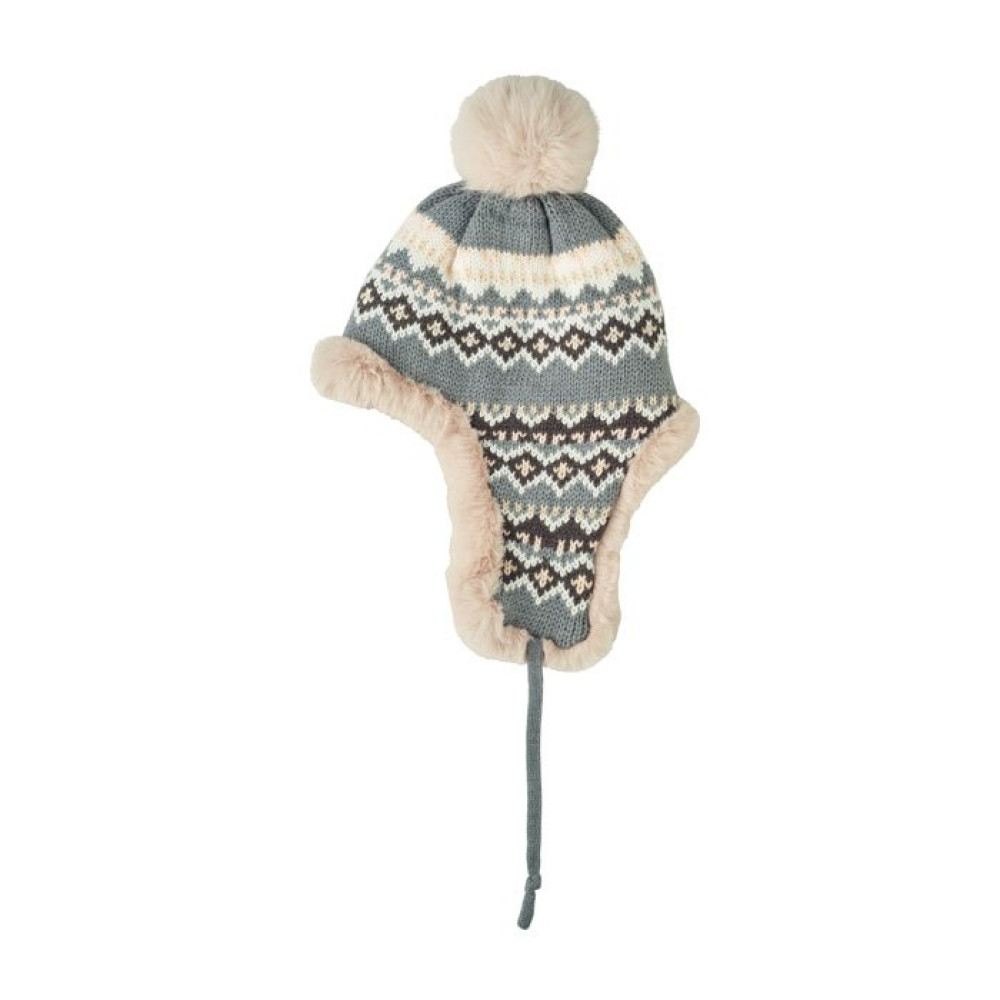 Вязаная шапка-ушанка из акрилового волокна с помпоном и подкладкой из полиэстера и флиса. Есть шильд для нанесения с одной стороны. Взрослый размер.