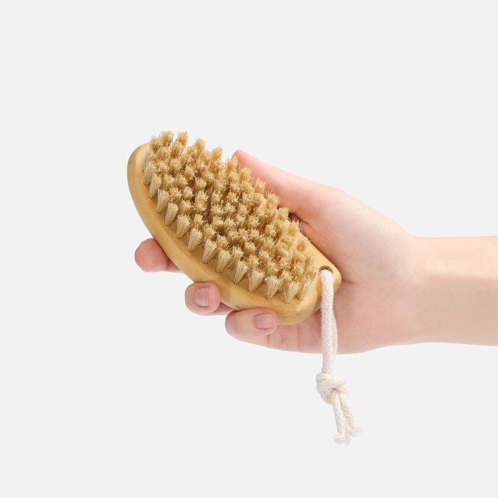 Щетка изготовлена из экологичных материалов. Натуральная щетина средней жесткости защитит кожу от мелких повреждений, подарив только самые приятные ощущения.
