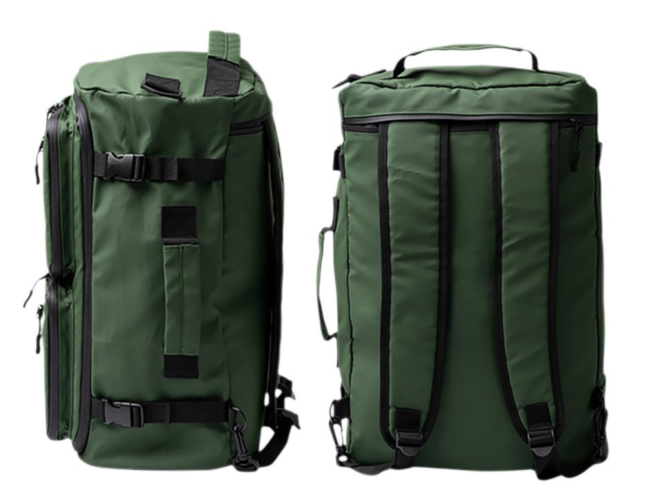 Трансформер, который можно носить как сумку или как рюкзак. Изготовлен из износостойкого и водостойкого материала: полиуретан + полиэстер рипстоп 600D. Конструкция и преимущества: - Два способа носки: основная ручка + мягкий плечевой ремень в комплекте (носите как сумку или как рюкзак) - Большое основное отделение: с полным открыванием (раскладывается как чемодан) — удобно собирать вещи - Отделение для обуви: изолированный отсек, чтобы не пачкать остальные вещи - Множество внешних карманов: для мелочей, которые должны быть под рукой - Усиленная ручка: выдерживает тяжелые нагрузки - Водонепроницаемые молнии: на всех отделениях — дополнительная защита от влаги - Материал: полиуретан + полиэстер рипстоп 600D (водостойкий, прочный на разрыв)