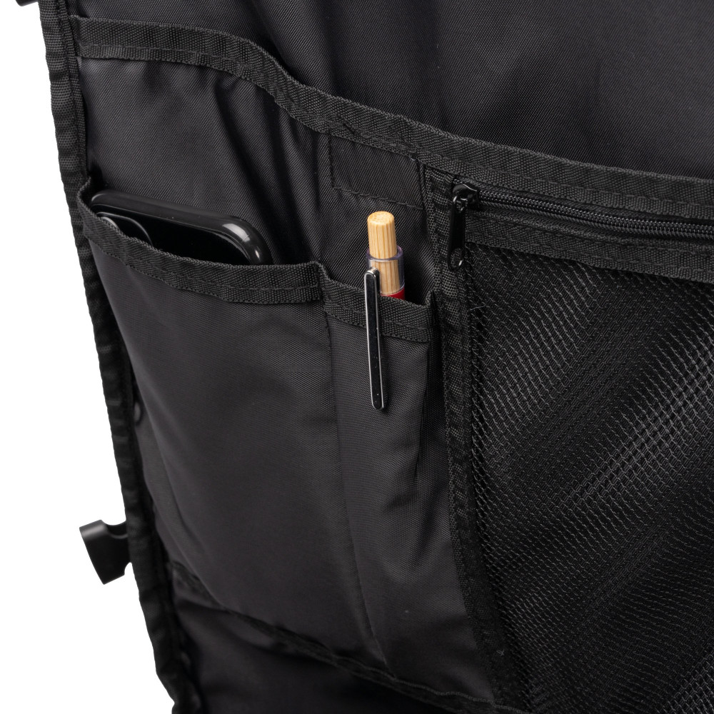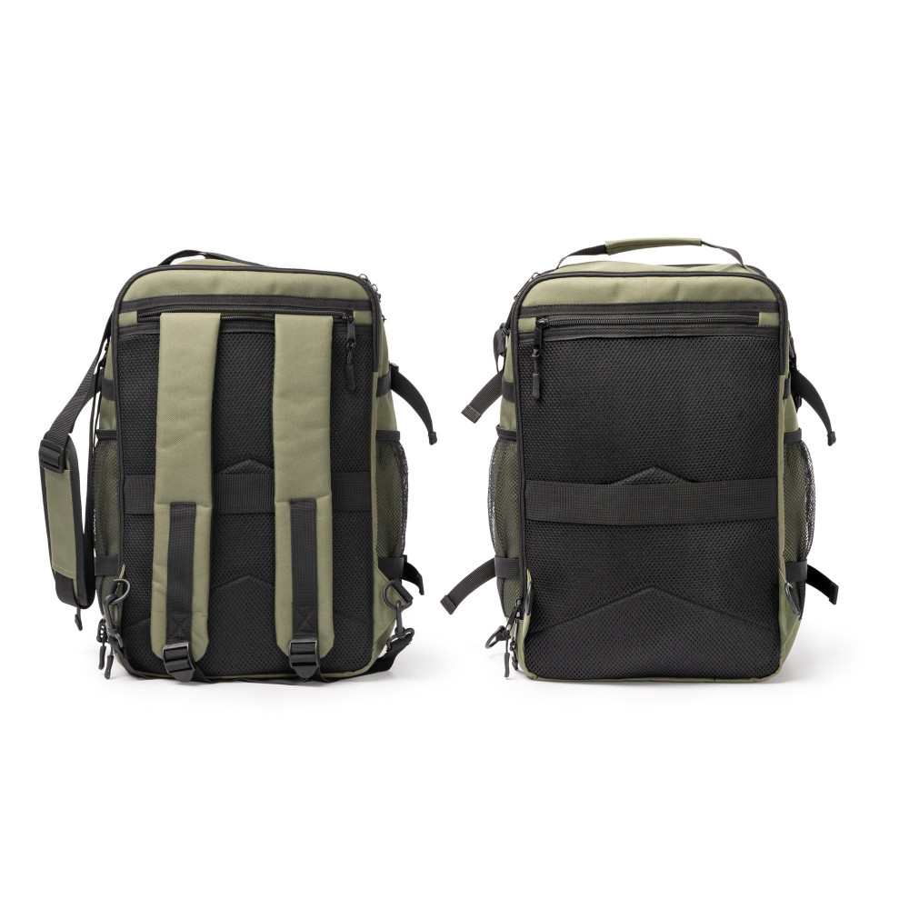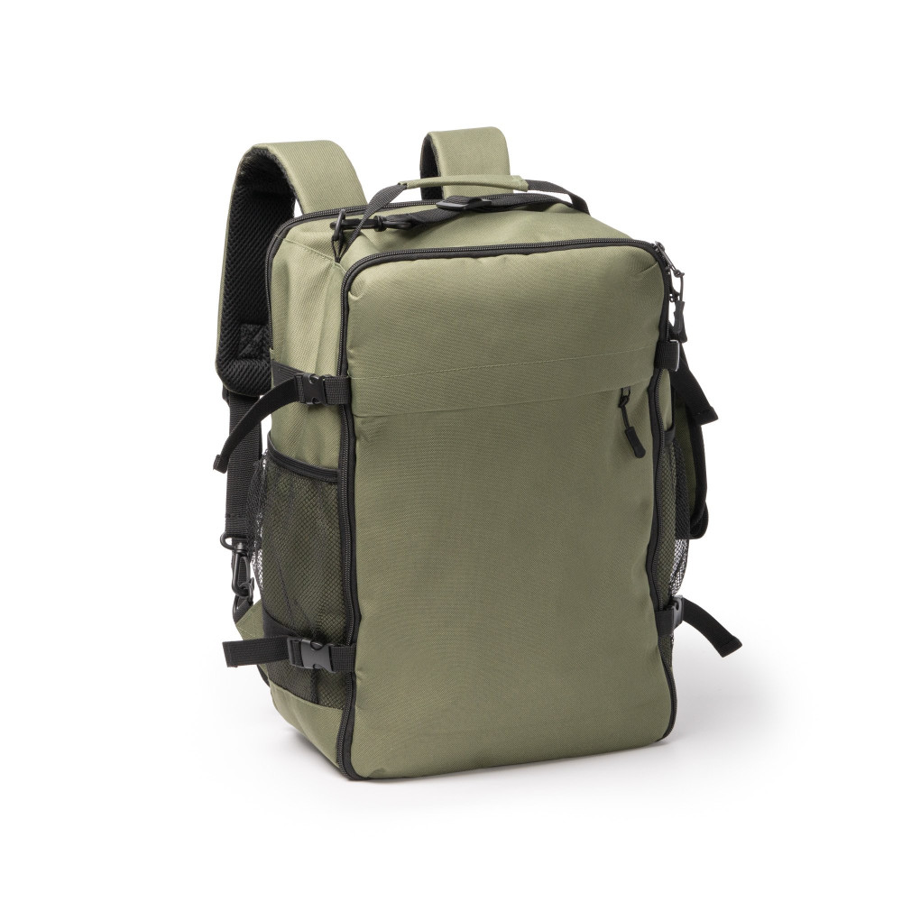 Рюкзак-сумка из 600D RPET, большой объём и открыв на 180 градусов.