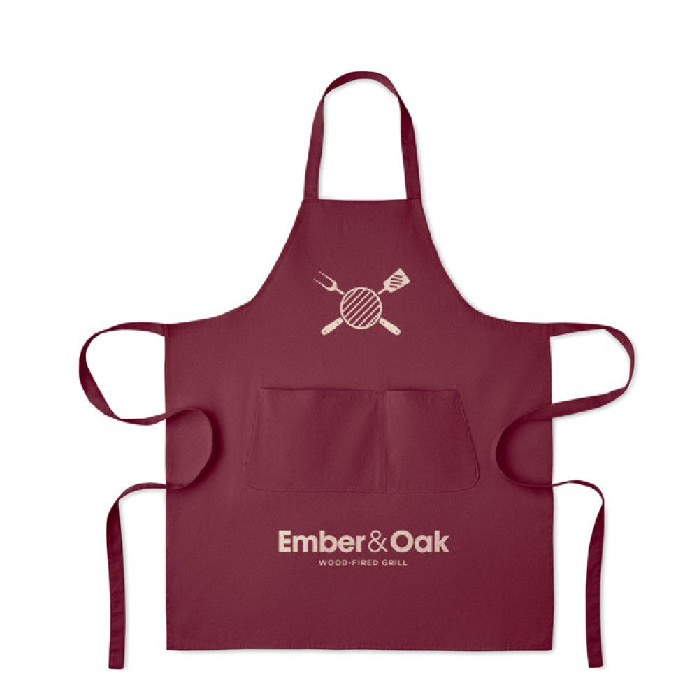 Кухонный фартук с большим передним карманом и двумя отделениями из органического хлопка плотностью 240 г/м². С регулируемым шейным ремешком.