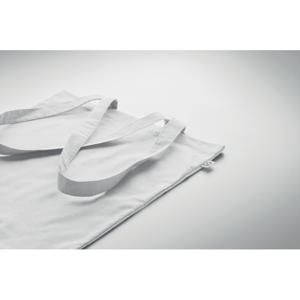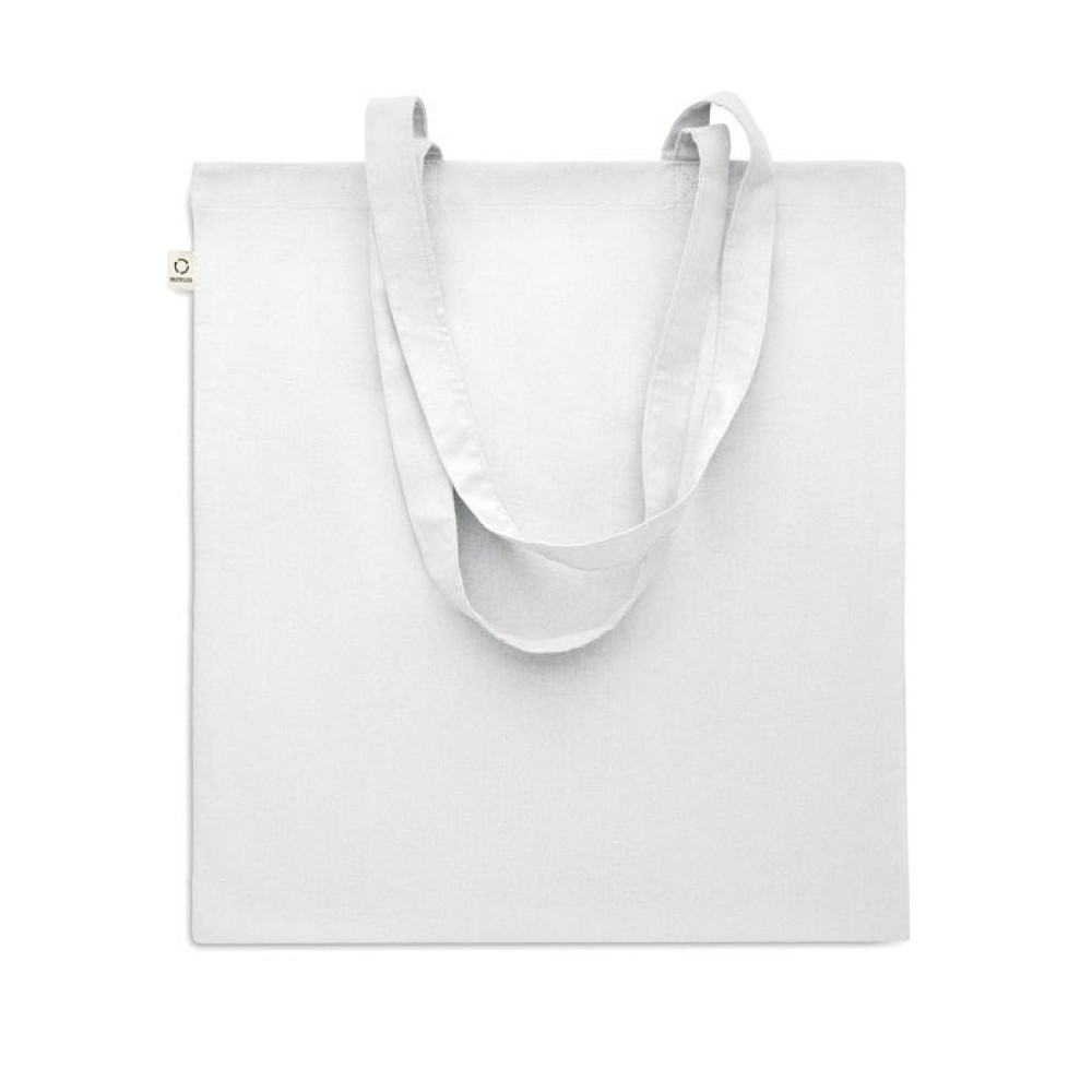 Сумка для покупок из переработанного хлопка (70%) и RPET(30%) с длинными ручками. 140 гр/м². Этот пункт может уменьшиться после впечатывания.