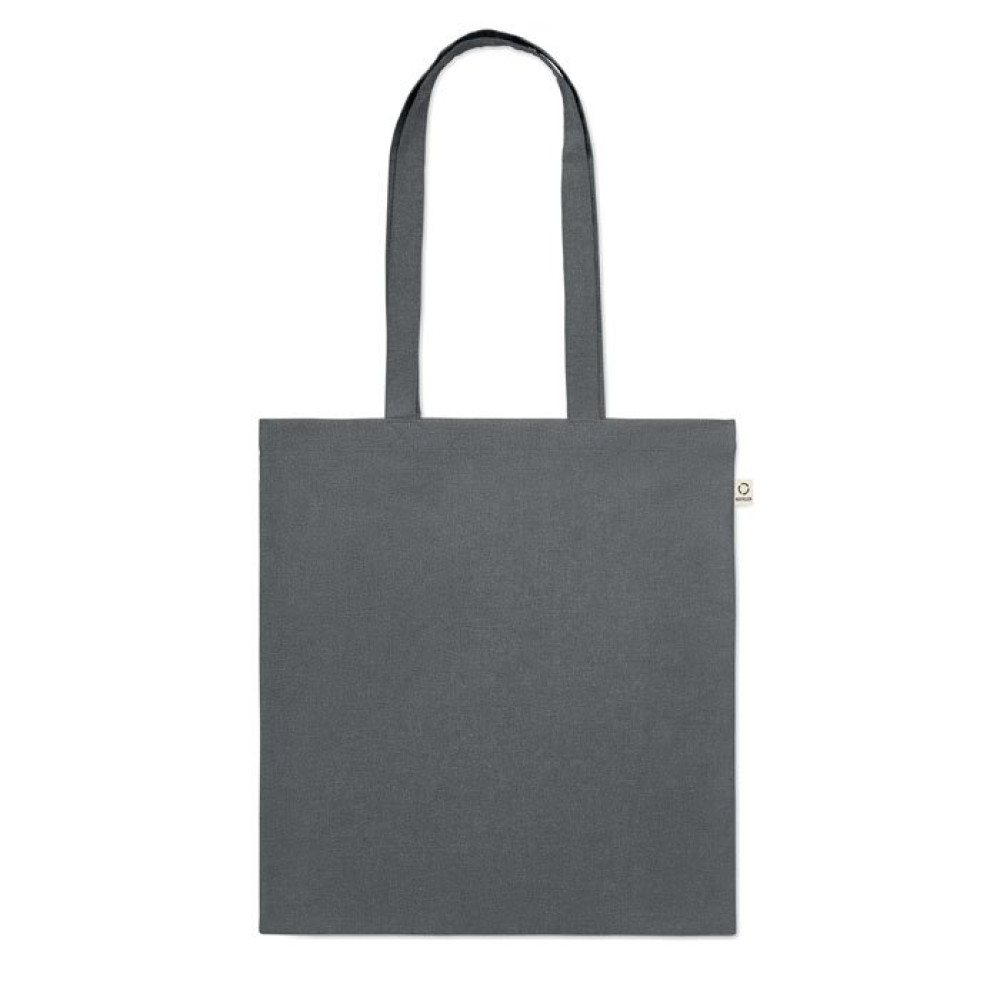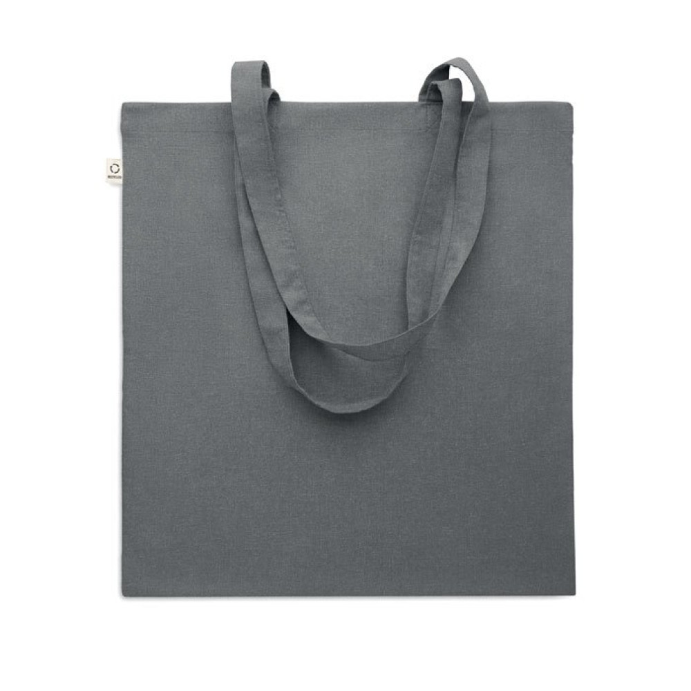 Сумка для покупок из переработанного хлопка (70%) и RPET(30%) с длинными ручками. 140 гр/м². Этот пункт может уменьшиться после впечатывания.