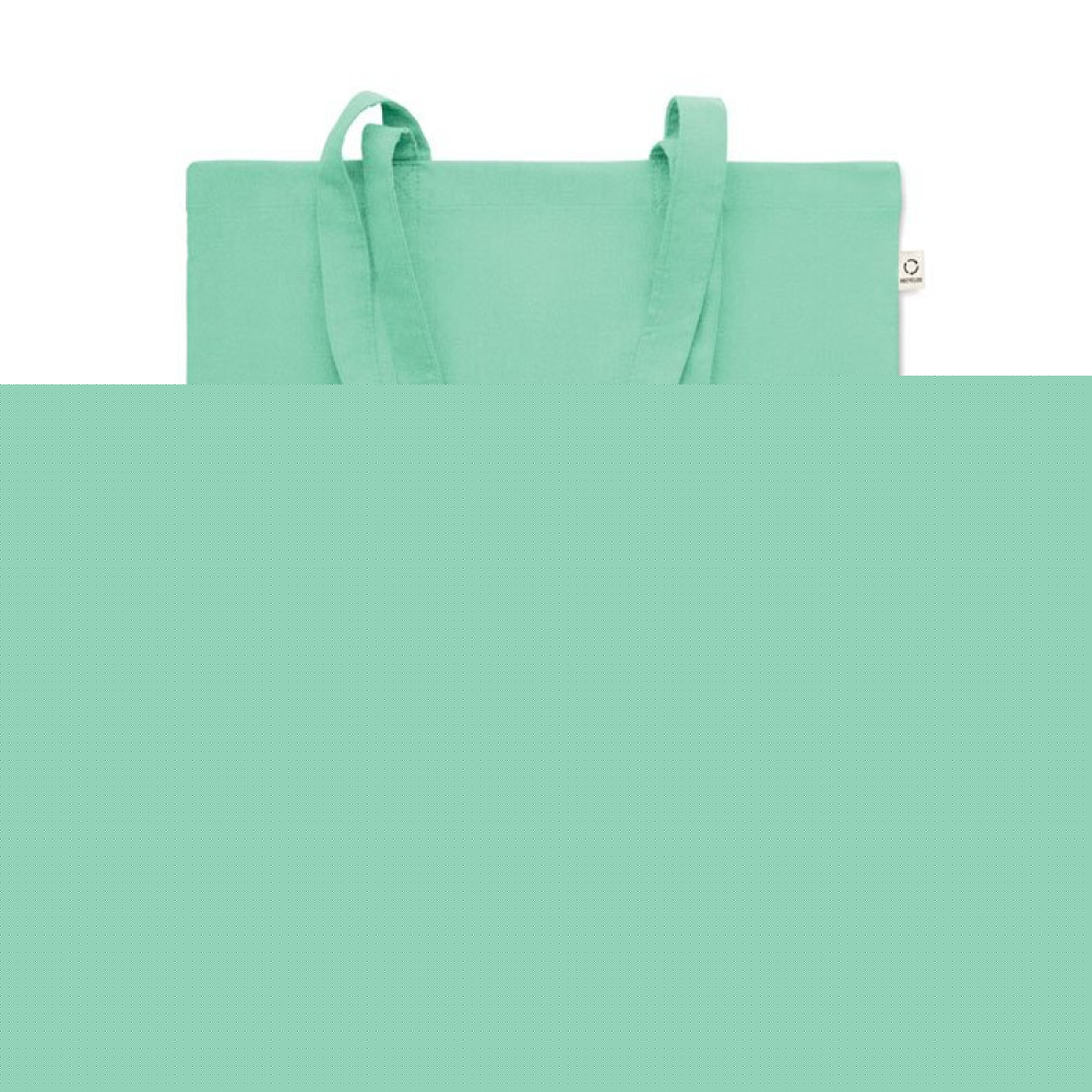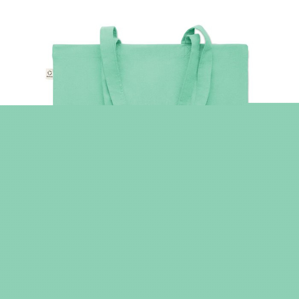Сумка для покупок из переработанного хлопка (70%) и RPET(30%) с длинными ручками. 140 гр/м². Этот пункт может уменьшиться после впечатывания.