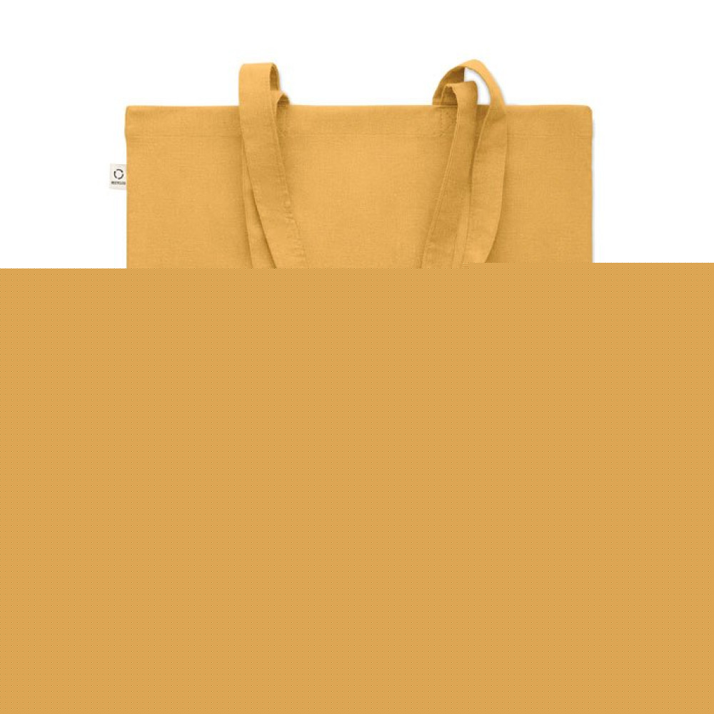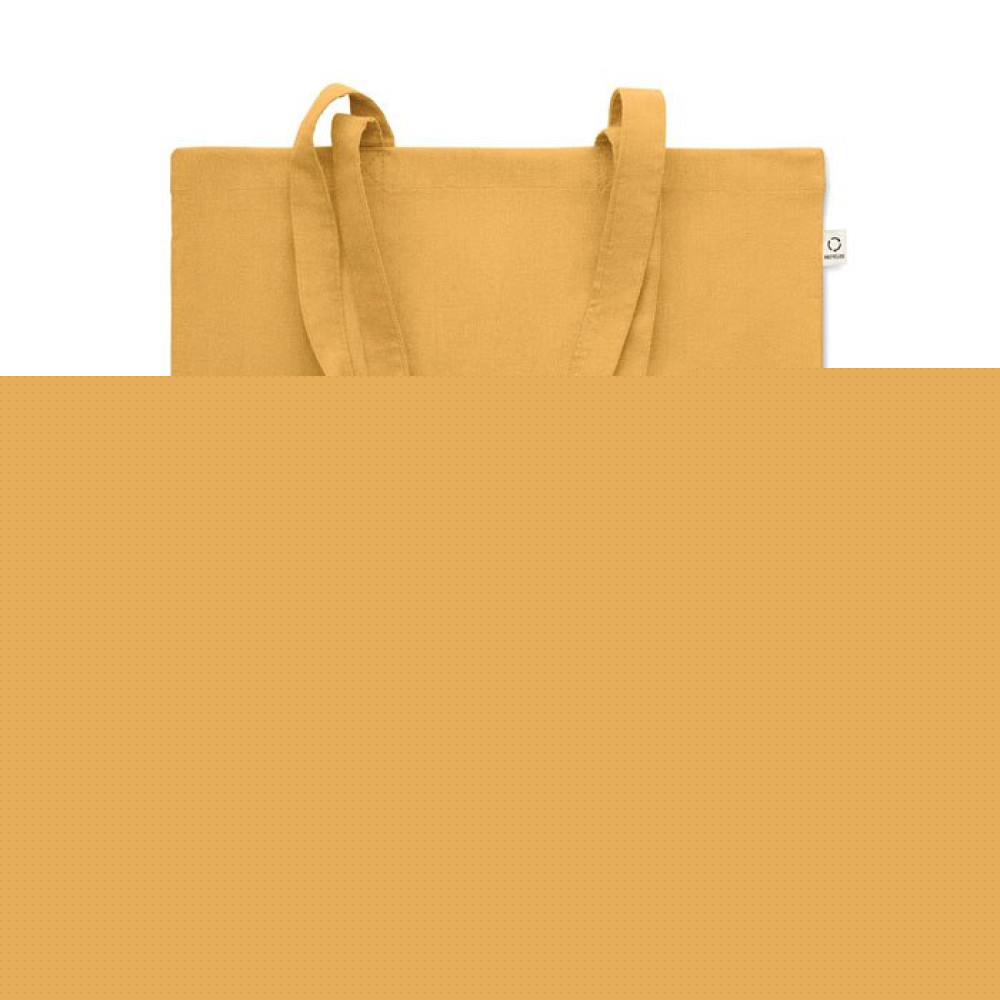 Сумка для покупок из переработанного хлопка (70%) и RPET(30%) с длинными ручками. 140 гр/м². Этот пункт может уменьшиться после впечатывания.