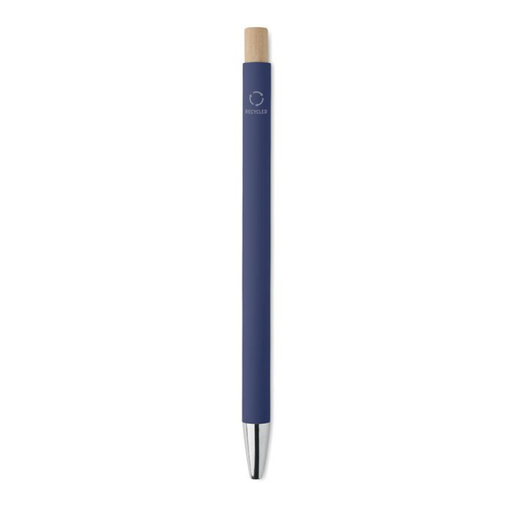Шариковая ручка из переработанного алюминия с бамбуковой кнопкой. Серебристый наконечник и клип. Синие чернила.