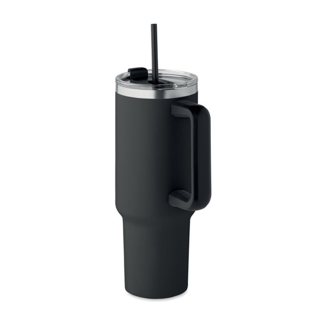 Термокружка с двойными стенками из переработанной нержавеющей стали 90% и 10% нержавеющей стали с герметичной крышкой и соломинкой. Объем 1200 мл.