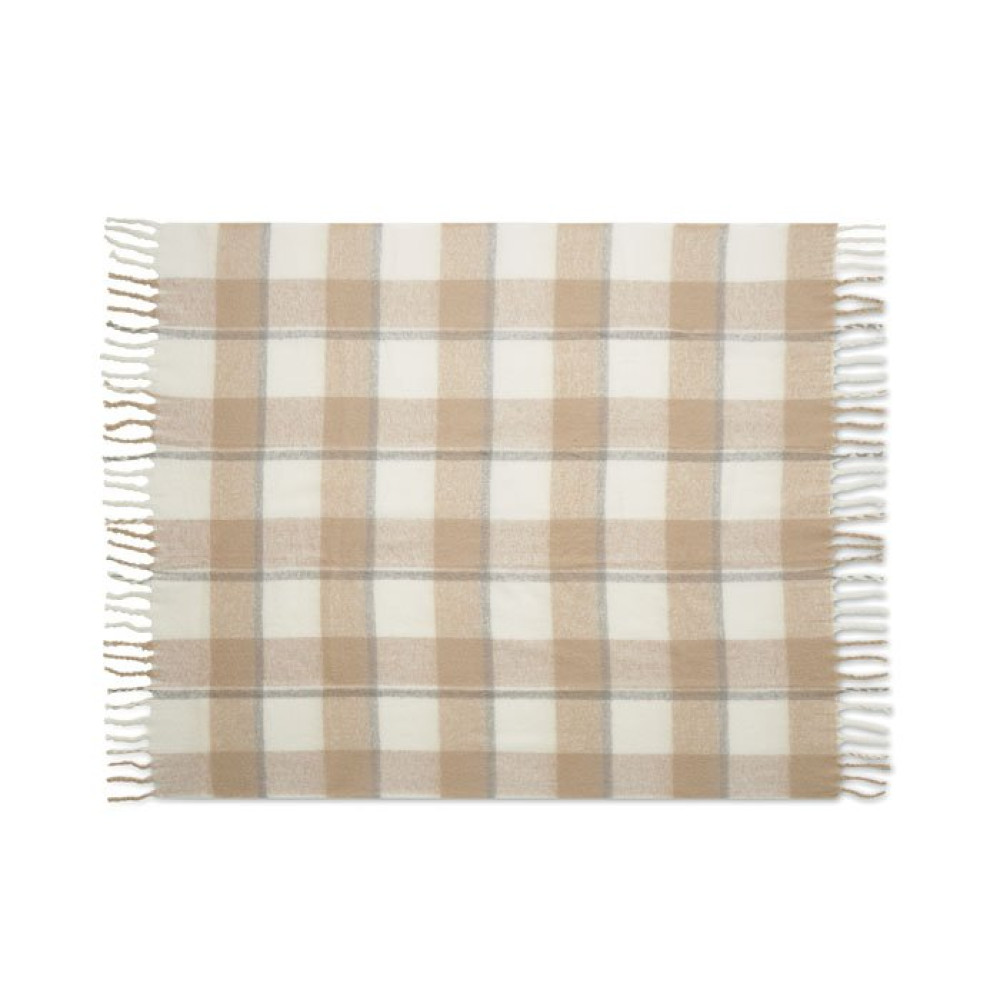 Мохеровый плед с клетчатым узором и кисточками ручной работы. Идет в комплекте с лентой и открыткой.