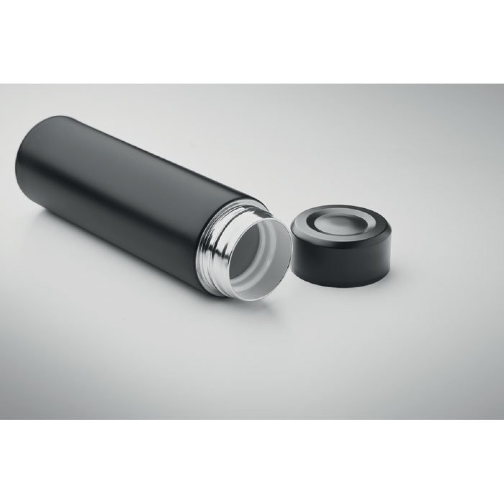 Двустенный термос из переработанной нержавеющей стали (90%) и обычной нержавеющей стали (10%) с внутренней керамической колбой. Герметичен. Объем: 420 мл.