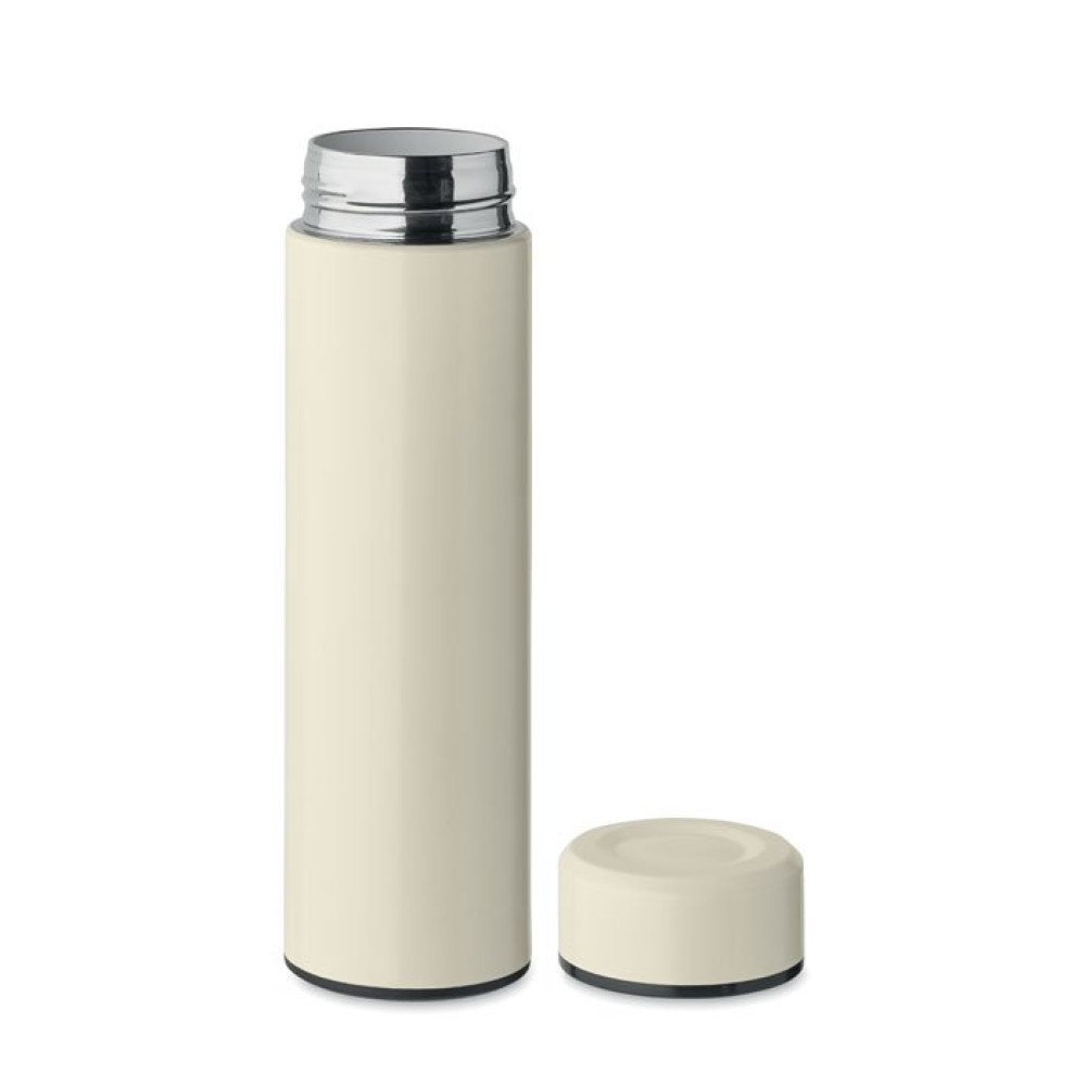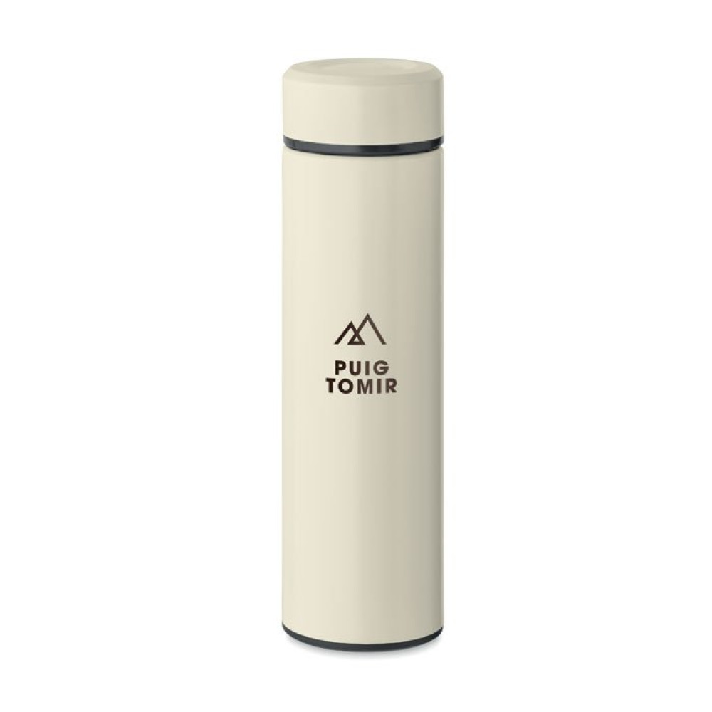 Двустенный термос из переработанной нержавеющей стали (90%) и обычной нержавеющей стали (10%) с внутренней керамической колбой. Герметичен. Объем: 420 мл.