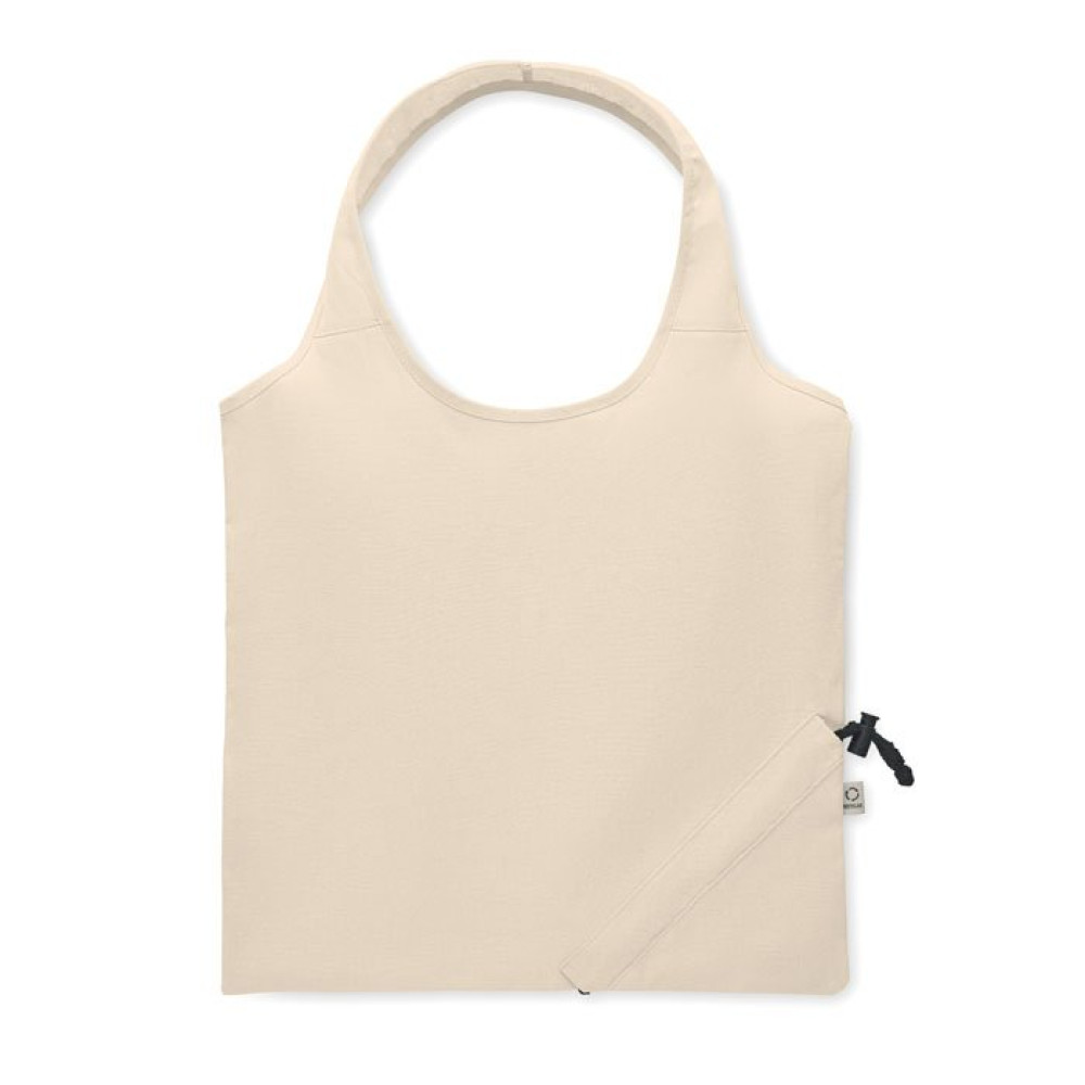 Складная сумка для покупок из 70% переработанного хлопка и 30% RPET. 140 гр/м². Этот товар может давать усадку после нанесения.