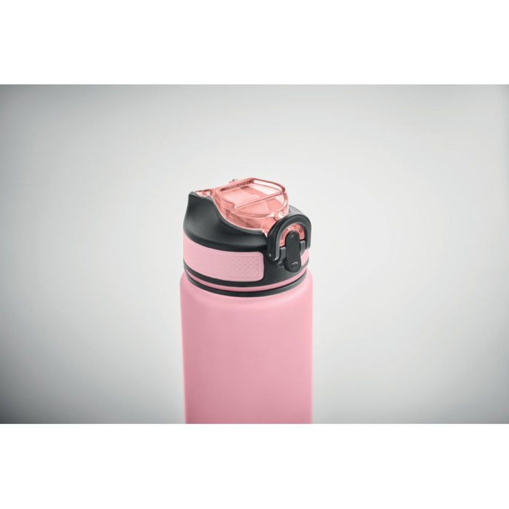 Спортивная бутылка для воды из переработанного пластика со встроенной соломинкой для питья, мягким силиконовым горлышком, разметкой, регулирующей потребление жидкости, удобной крышкой с замком безопасности и ремнем для переноски. Объем 1 л.
