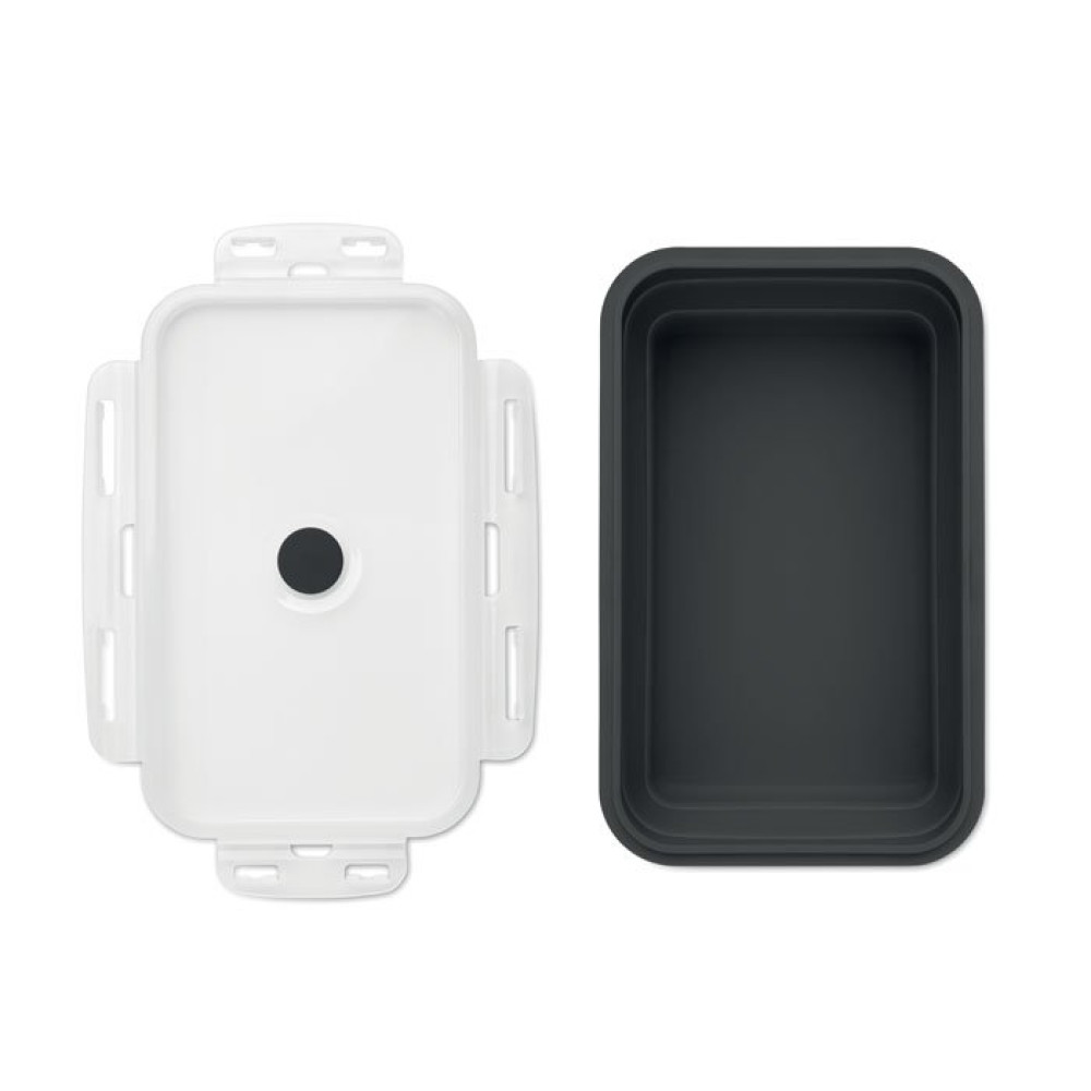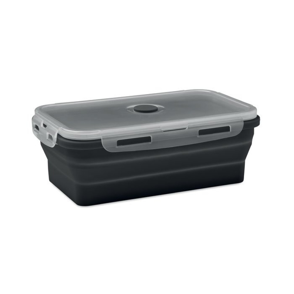 Складной силиконовый ланч-бокс с крышкой из полипропилена с силиконовым клапаном. Объем: 1200 мл.