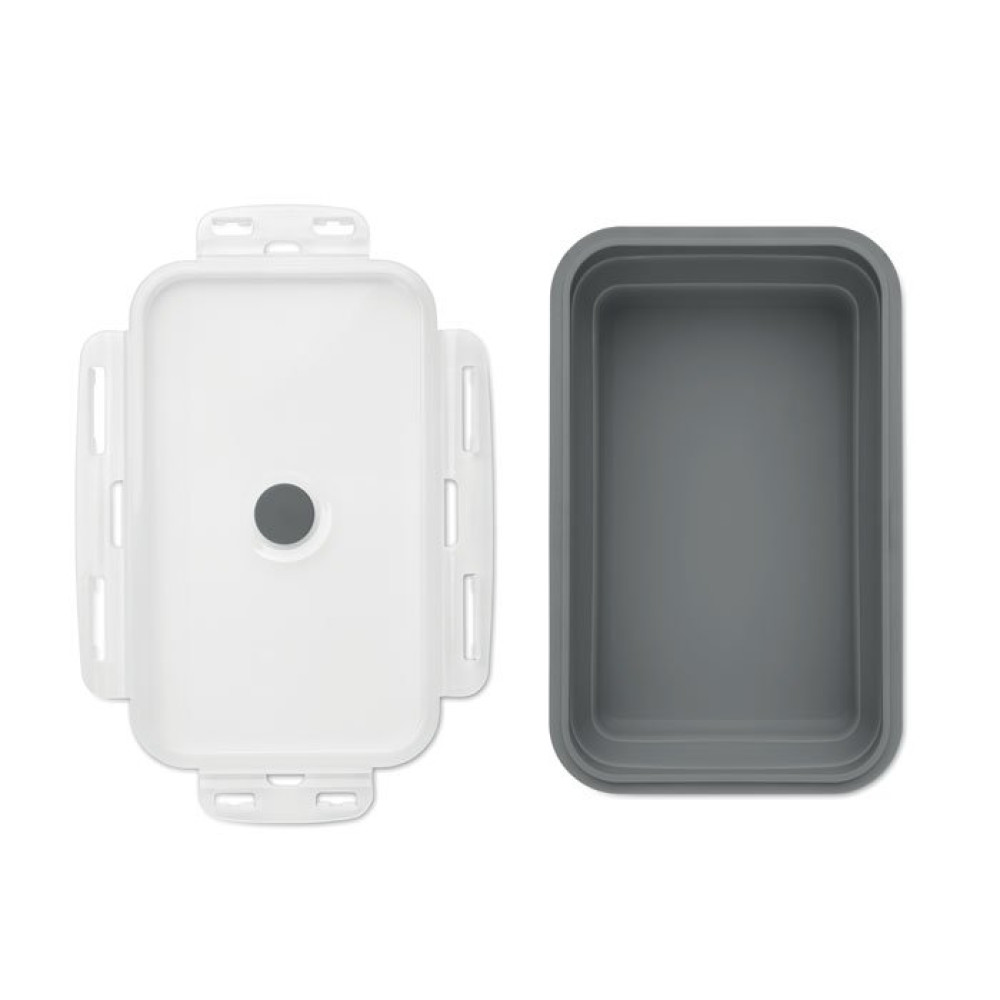 Складной силиконовый ланч-бокс с крышкой из полипропилена с силиконовым клапаном. Объем: 1200 мл.