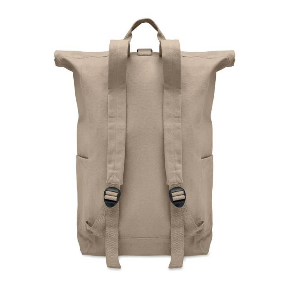 Рюкзак с застежкой Rolltop из переработанного хлопка (80%) и переработанного полиэстера (20%) плотностью 390 гр/м². Передний карман на молнии.