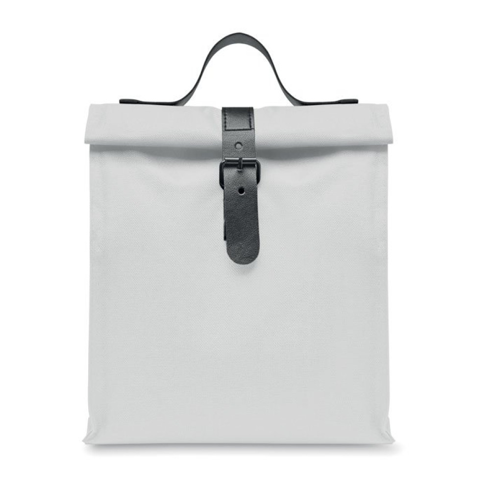 Сумка-холодильник из переработанного полиэстера 600D RPET с застежкой rolltop и ручкой из полиуретана. Изоляция: 3 мм пенополиэтилен с PEVA.