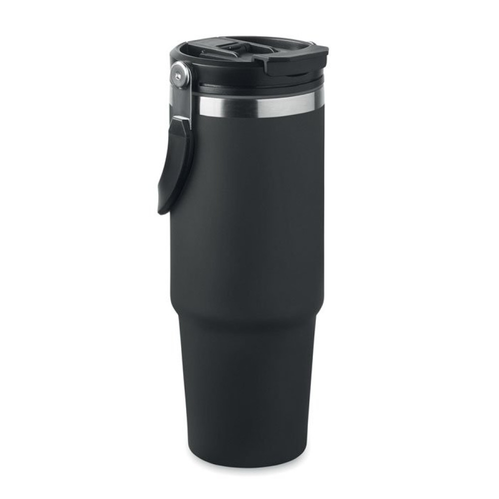 Термокружка с двойными стенками из переработанной нержавеющей стали 90% и 10% нержавеющей стали с пластиковой крышкой, соломинкой и отверстием для питья. Объем 850 мл.Leak-Free.