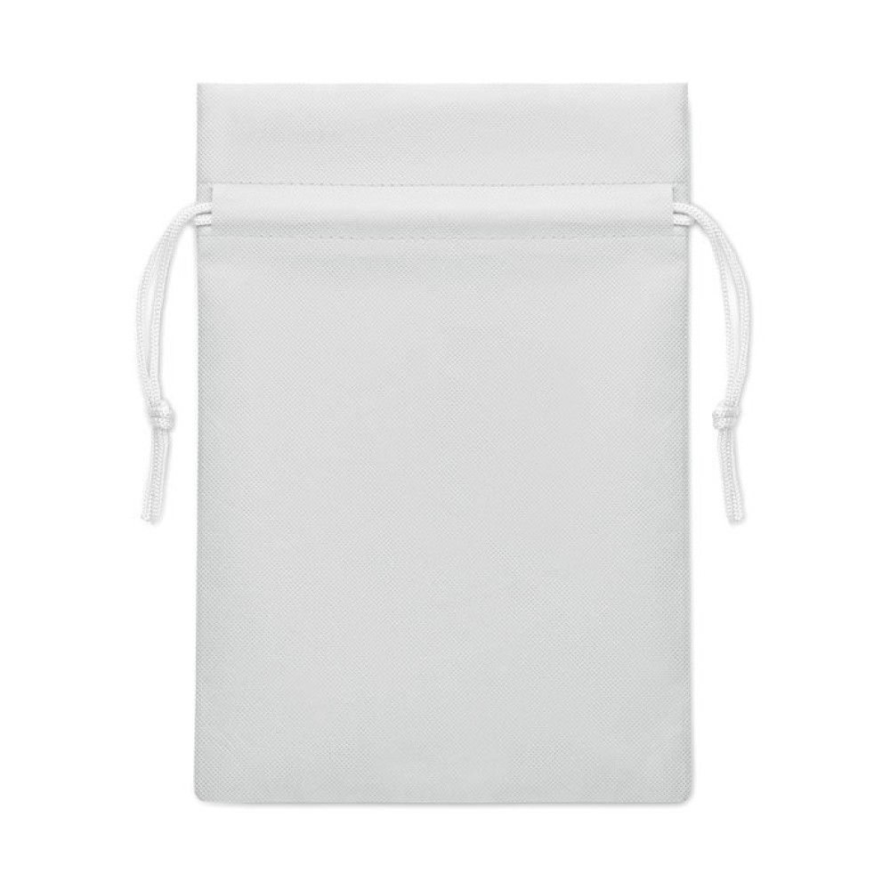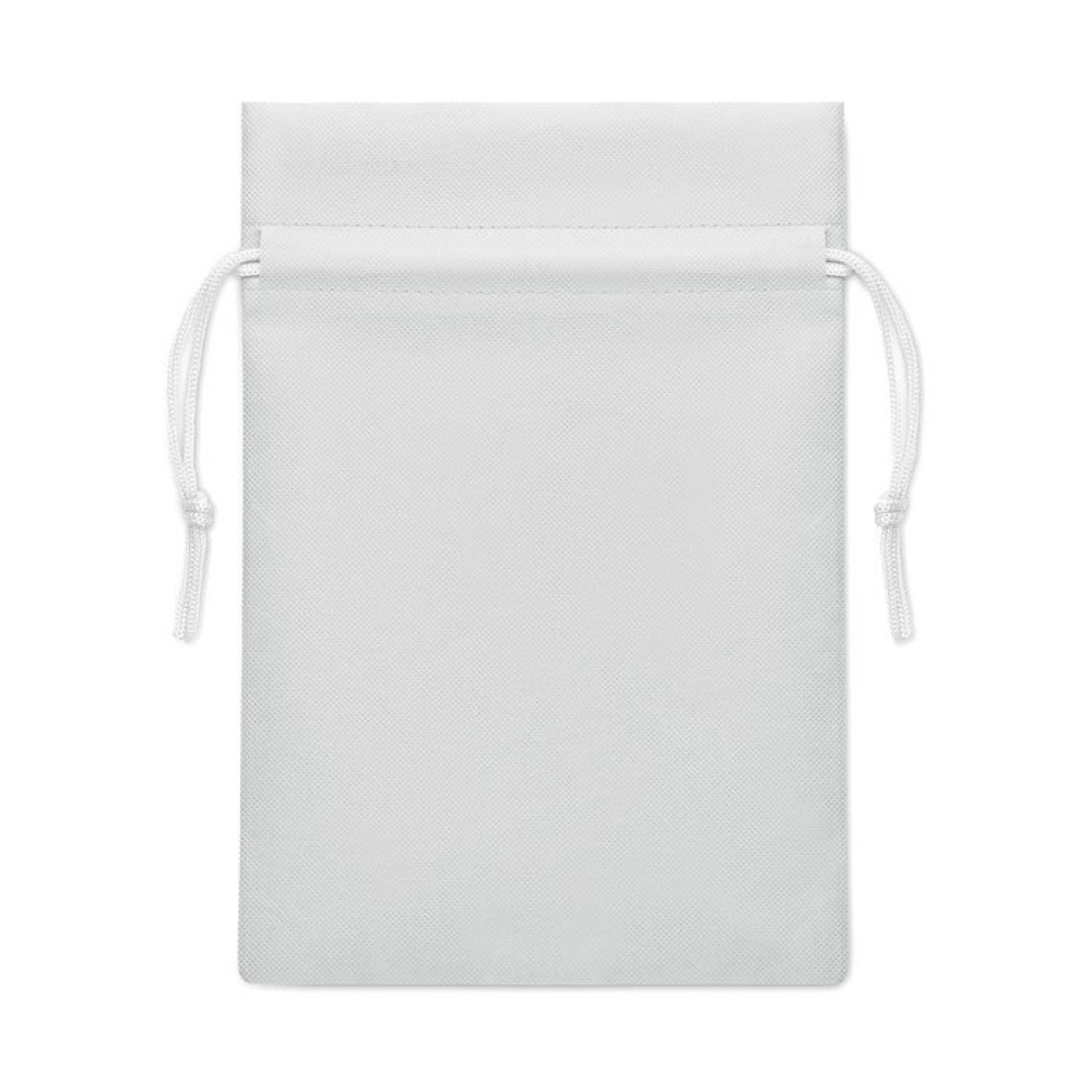 Маленький подарочный мешочек со шнурком из нетканого материала RPET 80 г/м². Размер примерно 20x30 см.