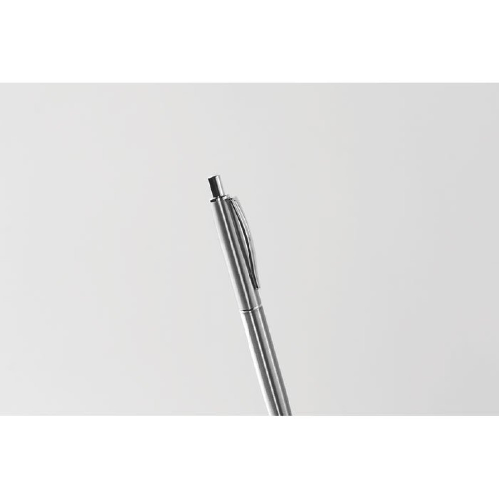 Шариковая ручка с кнопками в корпусе из переработанной нержавеющей стали. Синие чернила. Представлена в подарочной упаковке.