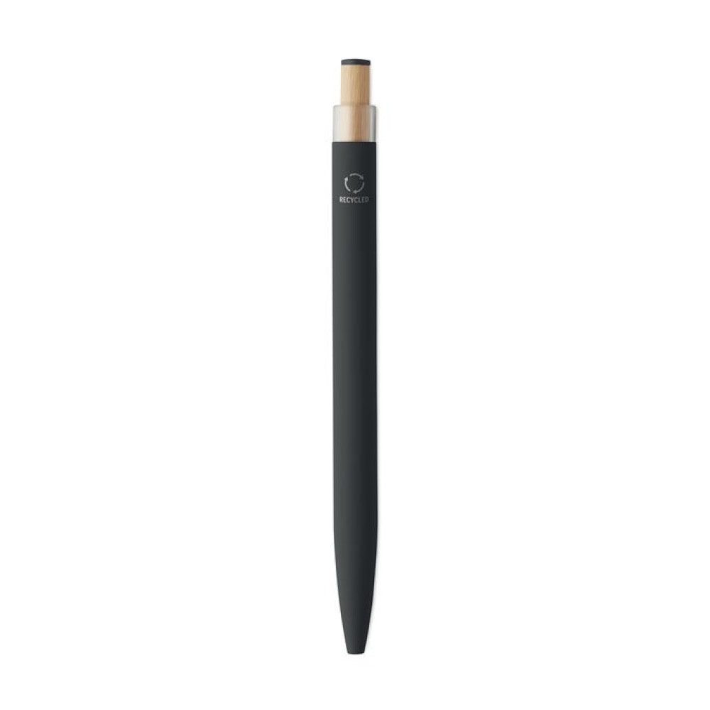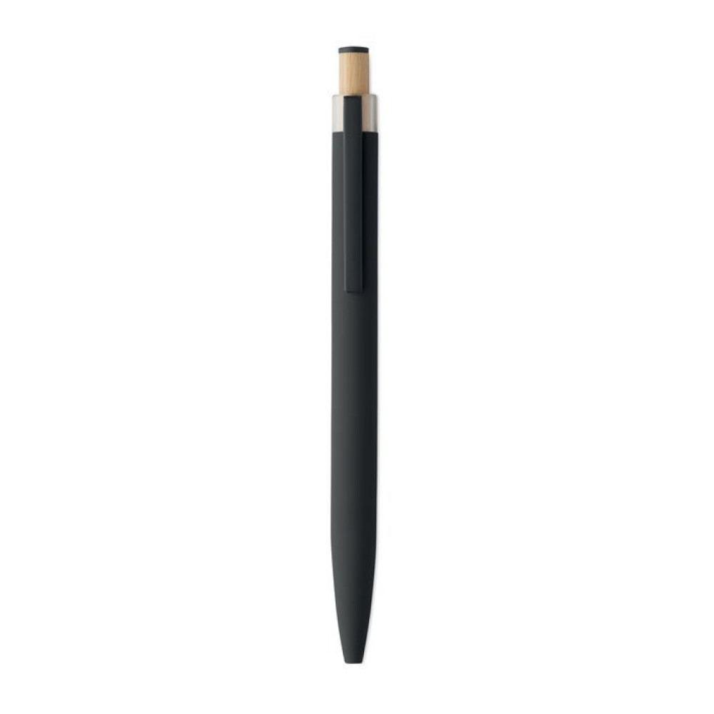 Шариковая ручка из переработанного алюминия с кнопкой из бамбука с цветными деталями и металлическим клипом. Синие чернила.