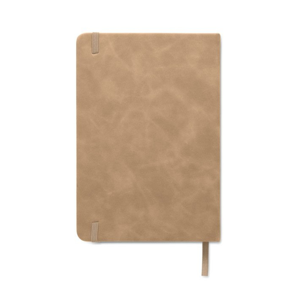 Блокнот формата А5 в твердом переплете и обложке из полиуретана, на 40% состоящей из переработанных материалов. 160 линованных страниц, переработанная бумага плотностью 70 г/м² (80 листов). Эластичный ремешок и закладка.