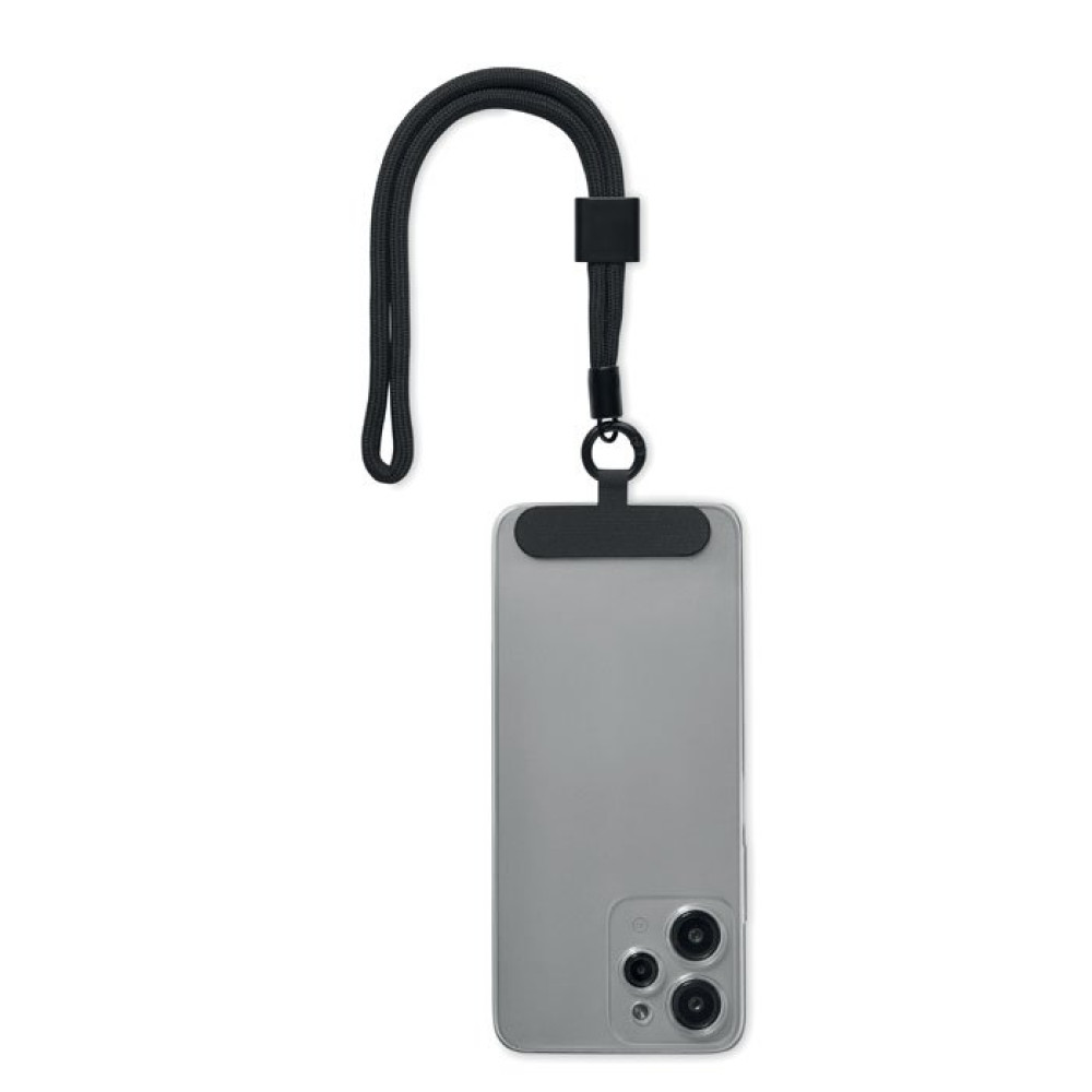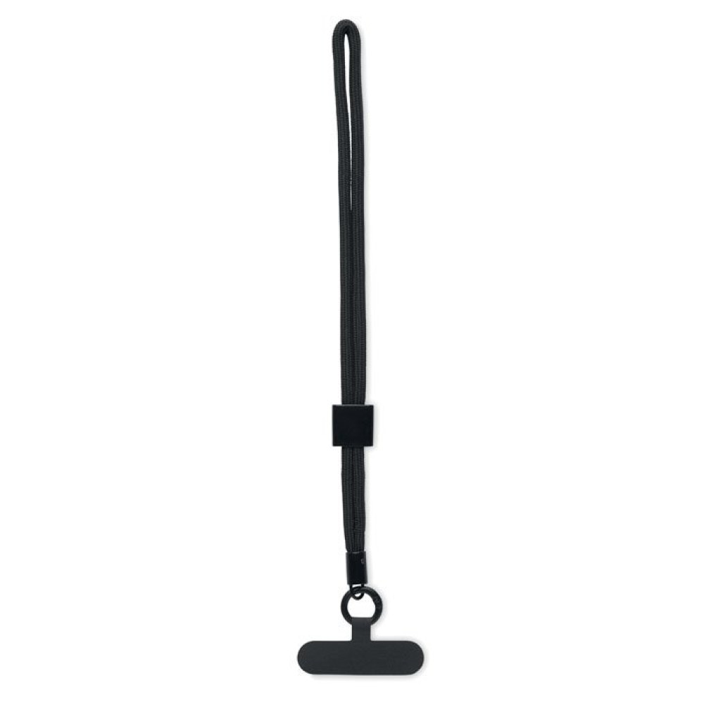 Регулируемый держатель для телефона в виде шнурка на запястье из полиэстера RPET. Длина 25 см.
