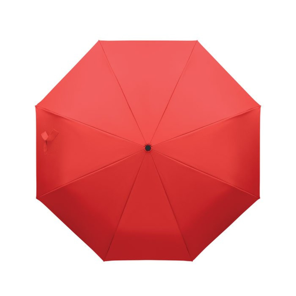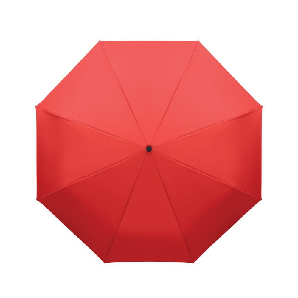 "Складной ветроустойчивый зонт 21"" из эпонжа RPET 190T с каркасом и спицами из стекловолокна. D-образная ручка-карабин с резиновым покрытием. Автоматическое открывание и закрывание. В комплект входит чехол."