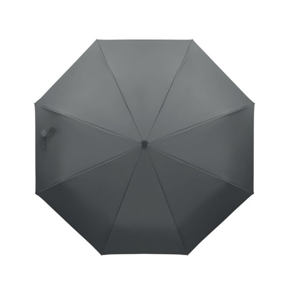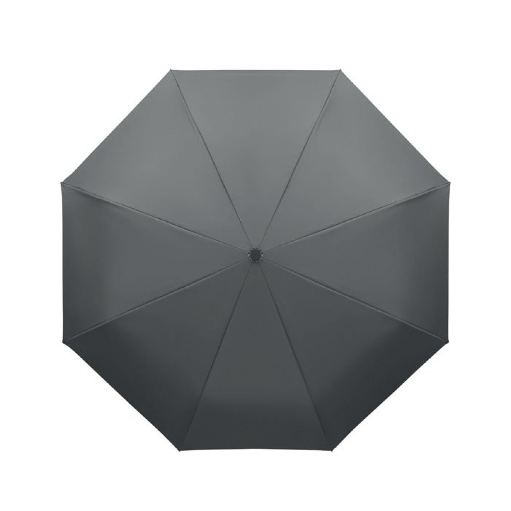 "Складной ветроустойчивый зонт 21"" из эпонжа RPET 190T с каркасом и спицами из стекловолокна. D-образная ручка-карабин с резиновым покрытием. Автоматическое открывание и закрывание. В комплект входит чехол."