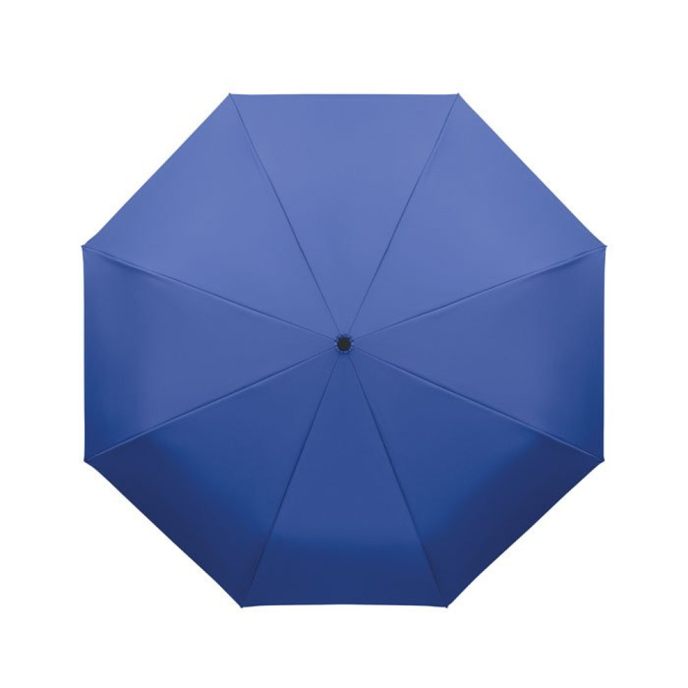 "Складной ветроустойчивый зонт 21"" из эпонжа RPET 190T с каркасом и спицами из стекловолокна. D-образная ручка-карабин с резиновым покрытием. Автоматическое открывание и закрывание. В комплект входит чехол."