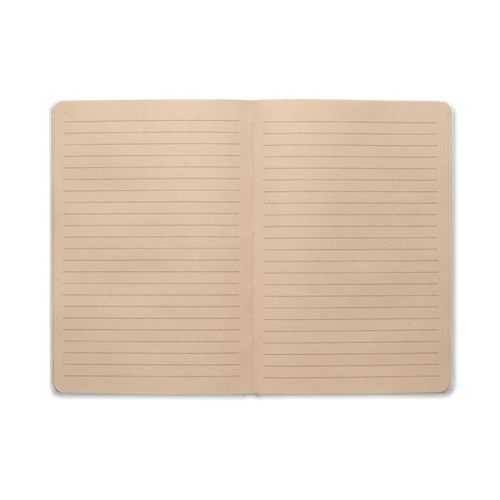 Блокнот формата А5 в твердой обложке со 160 линованными страницами (80 листов) из биоразлагаемого пластика из сахарного тростника (65% волокна сахарного тростника/35% бумаги). Переплет.
