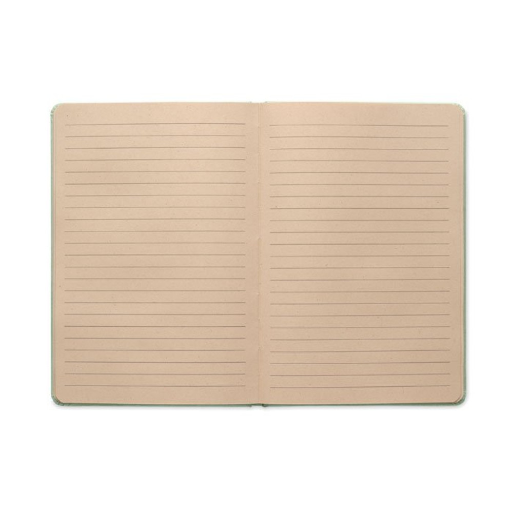 Блокнот формата А5 в твердой обложке со 160 линованными страницами (80 листов) из биоразлагаемого пластика из сахарного тростника (65% волокна сахарного тростника/35% бумаги). Переплет.
