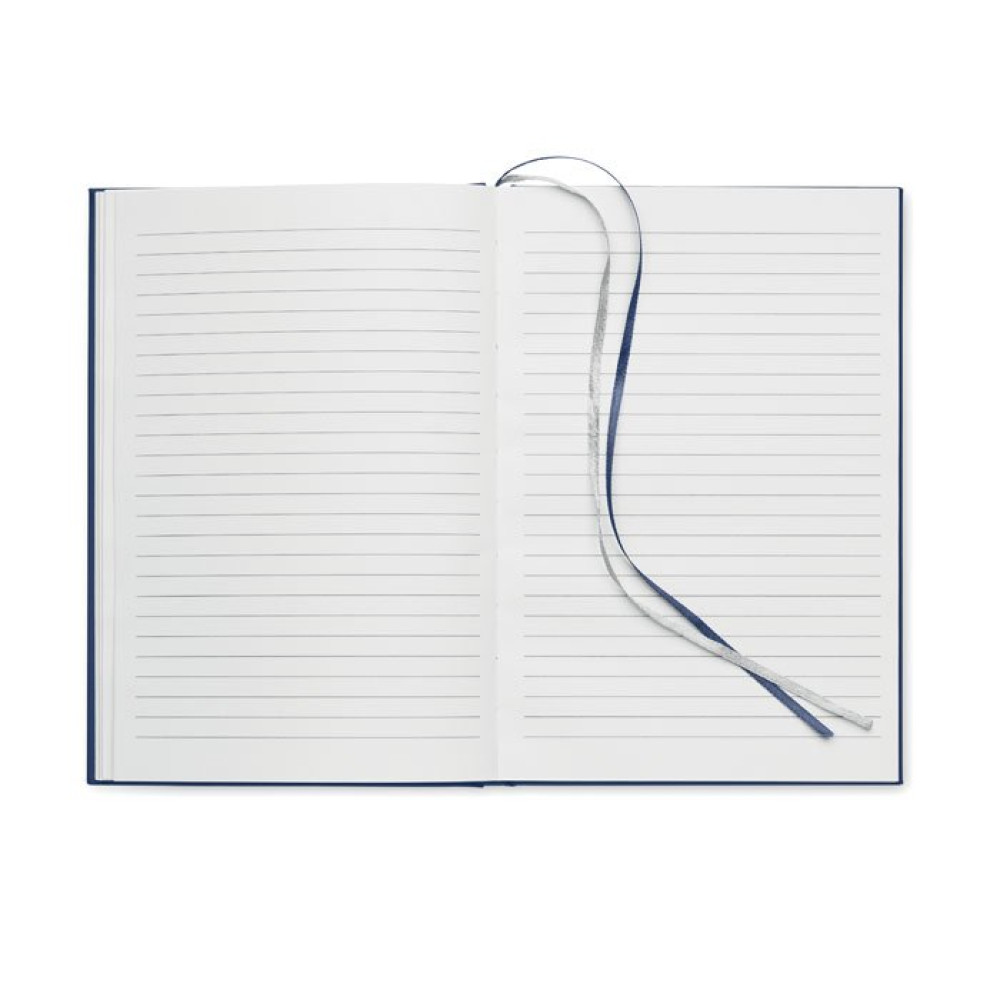 Блокнот формата А5 в обложке из переработанного полиэстера (60%) и полиуретана (40%). Переплет. 256 линованных страниц из переработанной бумаги 70 г/м² (128 листов). 2 закладки из полиэстера.