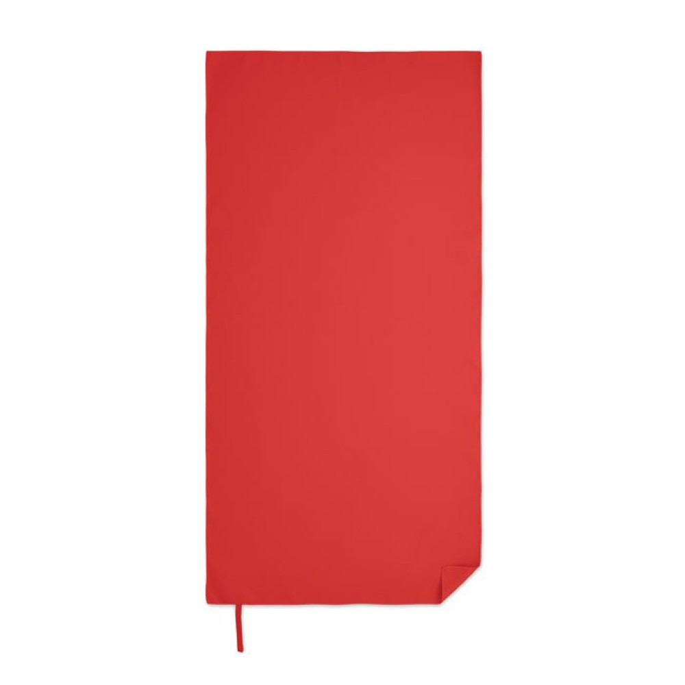 Полотенце из микрофибры (90% полиэстера и 10% полиамида) с эластичной петлей для подвешивания. Легкое и быстросохнущее. Размер 50 см x 100 см.