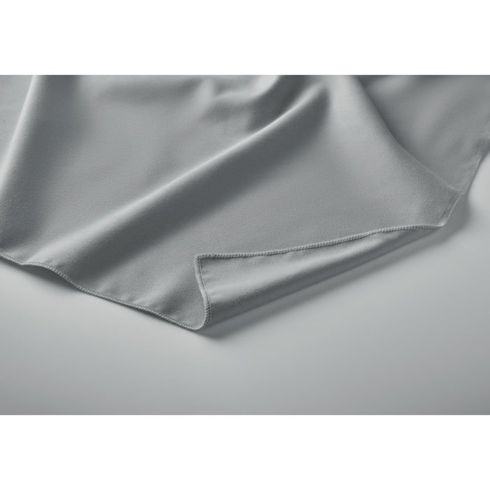 Полотенце из микрофибры (90% полиэстера и 10% полиамида) с эластичной петлей для подвешивания. Легкое и быстросохнущее. Размер 50 см x 100 см.