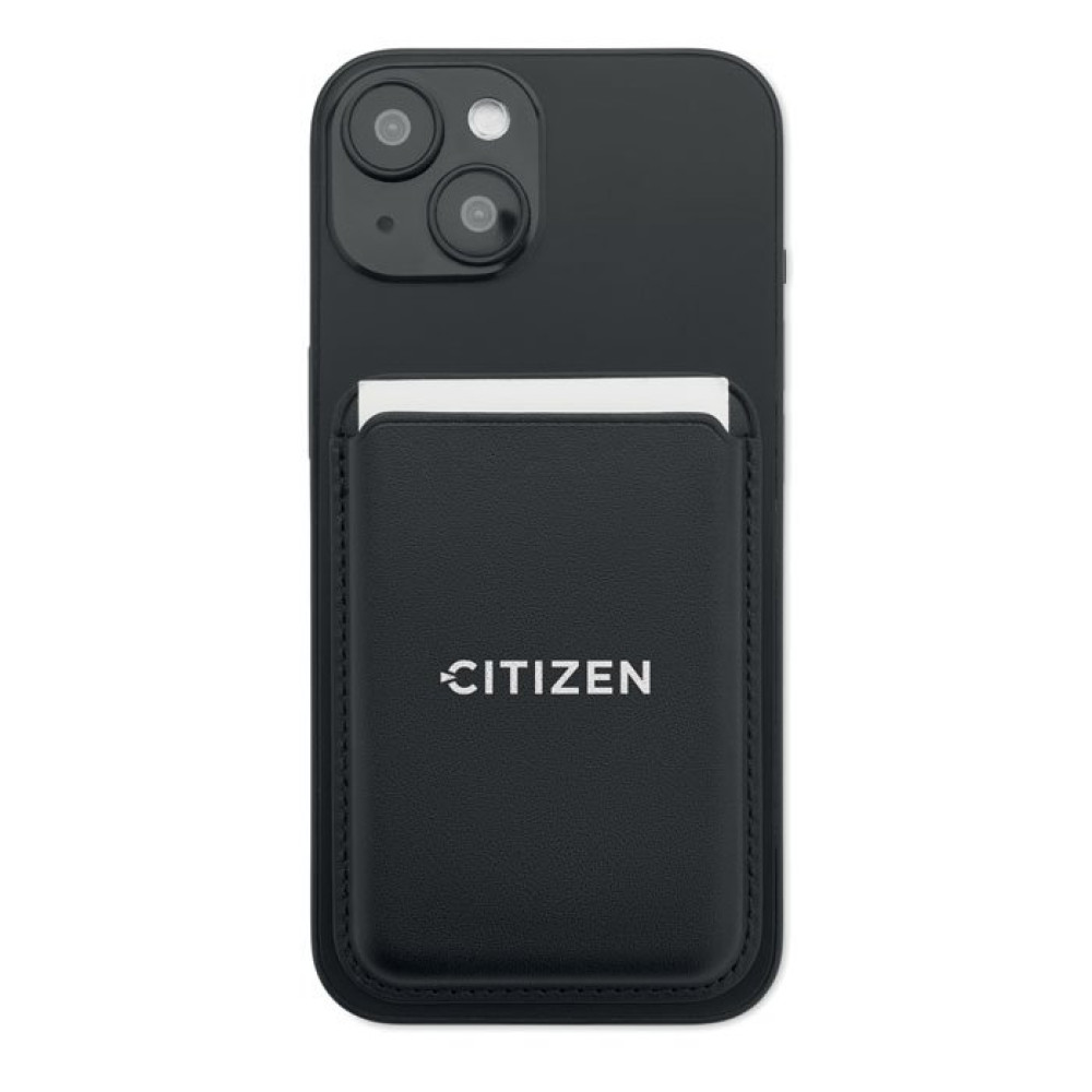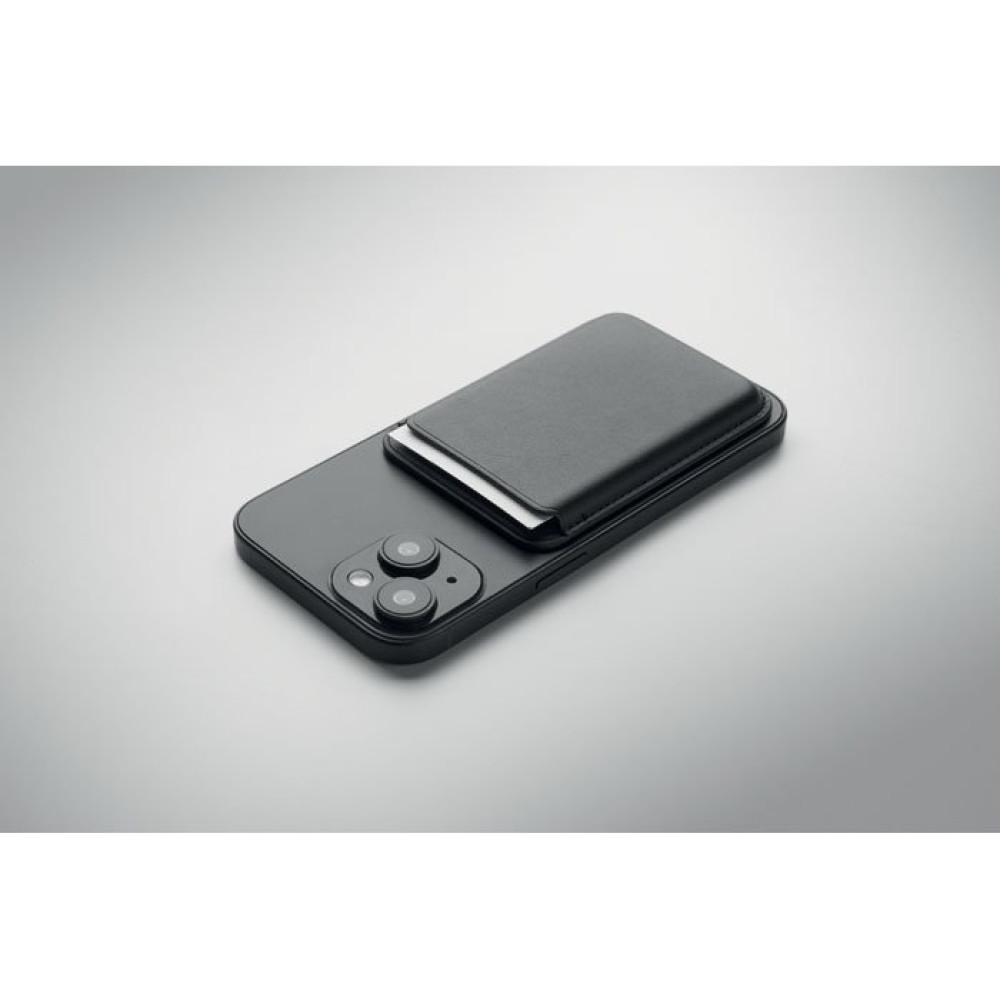 Магнитный держатель для кредитных карт из искусственной кожи (на 3 карты). В комплекте дополнительное металлическое кольцо.