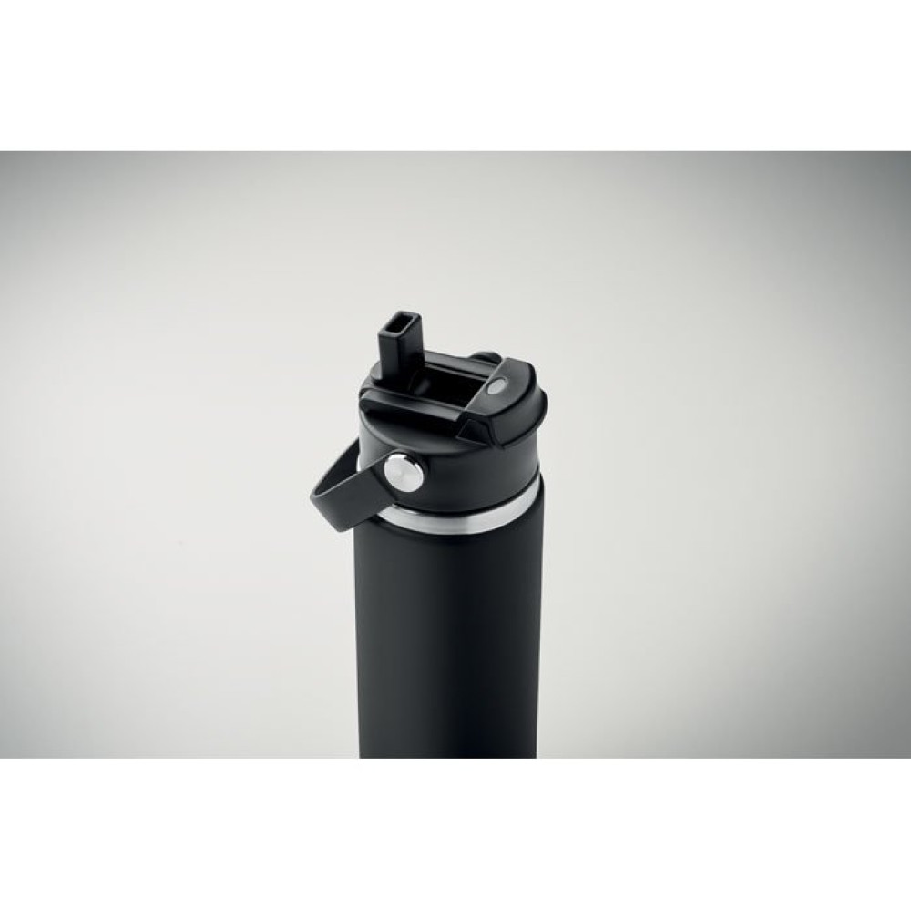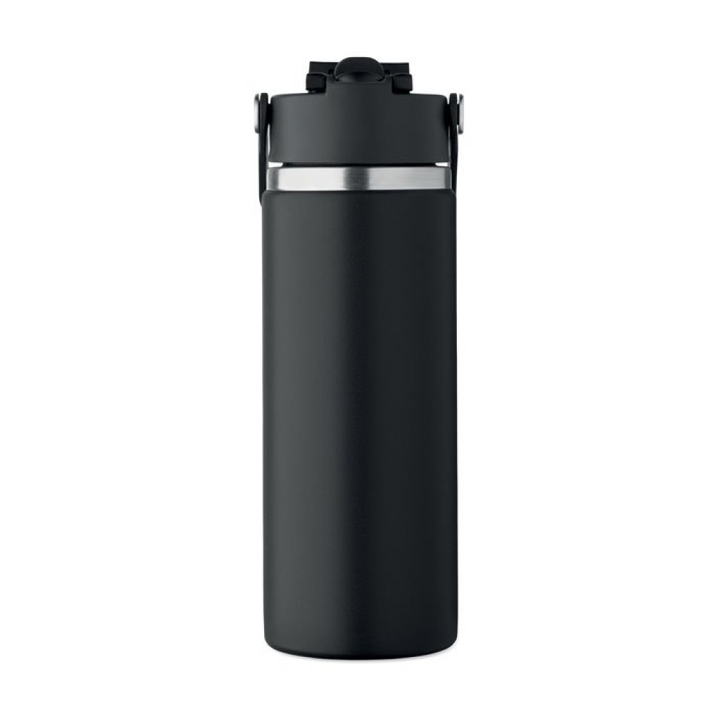 Термос с двойными стенками из переработанной нержавеющей стали 90% и 10% нержавеющей стали с трубочкой и крышкой с ручкой. Герметичный. Объем: 500 мл.