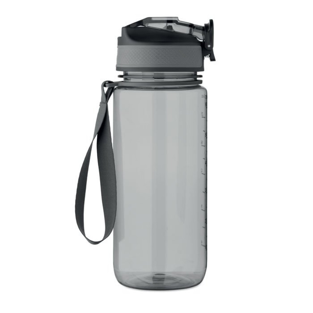 Спортивная бутылка для воды из RPET со встроенной трубочкой, откидной крышкой, открывающейся одной рукой, предохранительным замком и ремешком для переноски из RPET. Объем 700 мл. Герметичная.